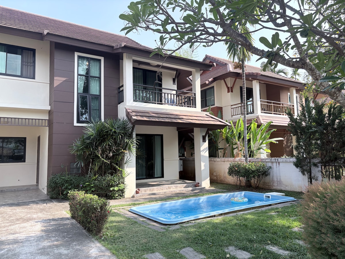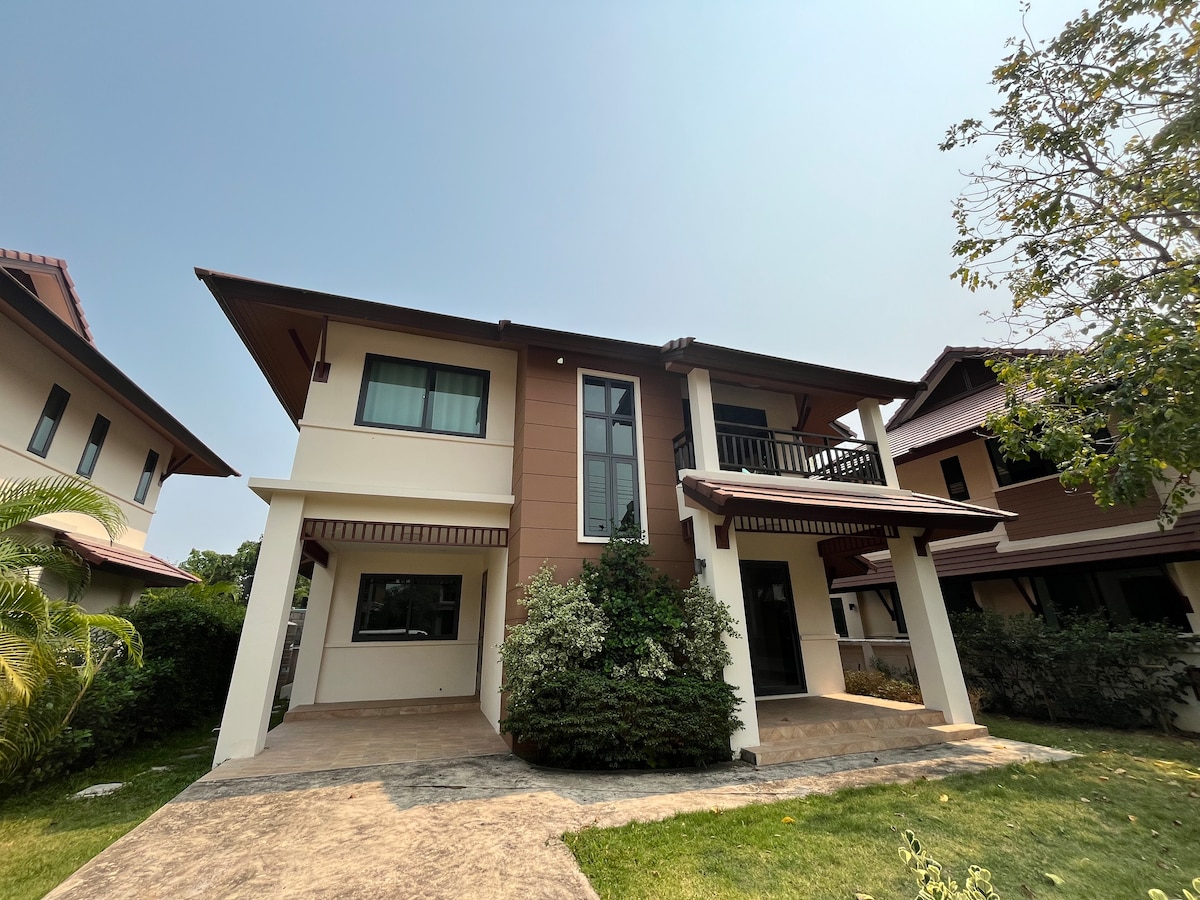Welcome to your home-away-from-home in Chiang Mai! Designed for families, our cozy 4-bedroom home offers the perfect blend of modern comfort and café-style charm. we are just 1 km (a breezy 2-minute drive) from Lanna International School. Imagine dropping the kids off at school stress-free and returning to enjoy your morning coffee in a sun-lit living room. Whether you are here for a summer course or a family holiday, our home is your peaceful sanctuary near Kad Farang Village.