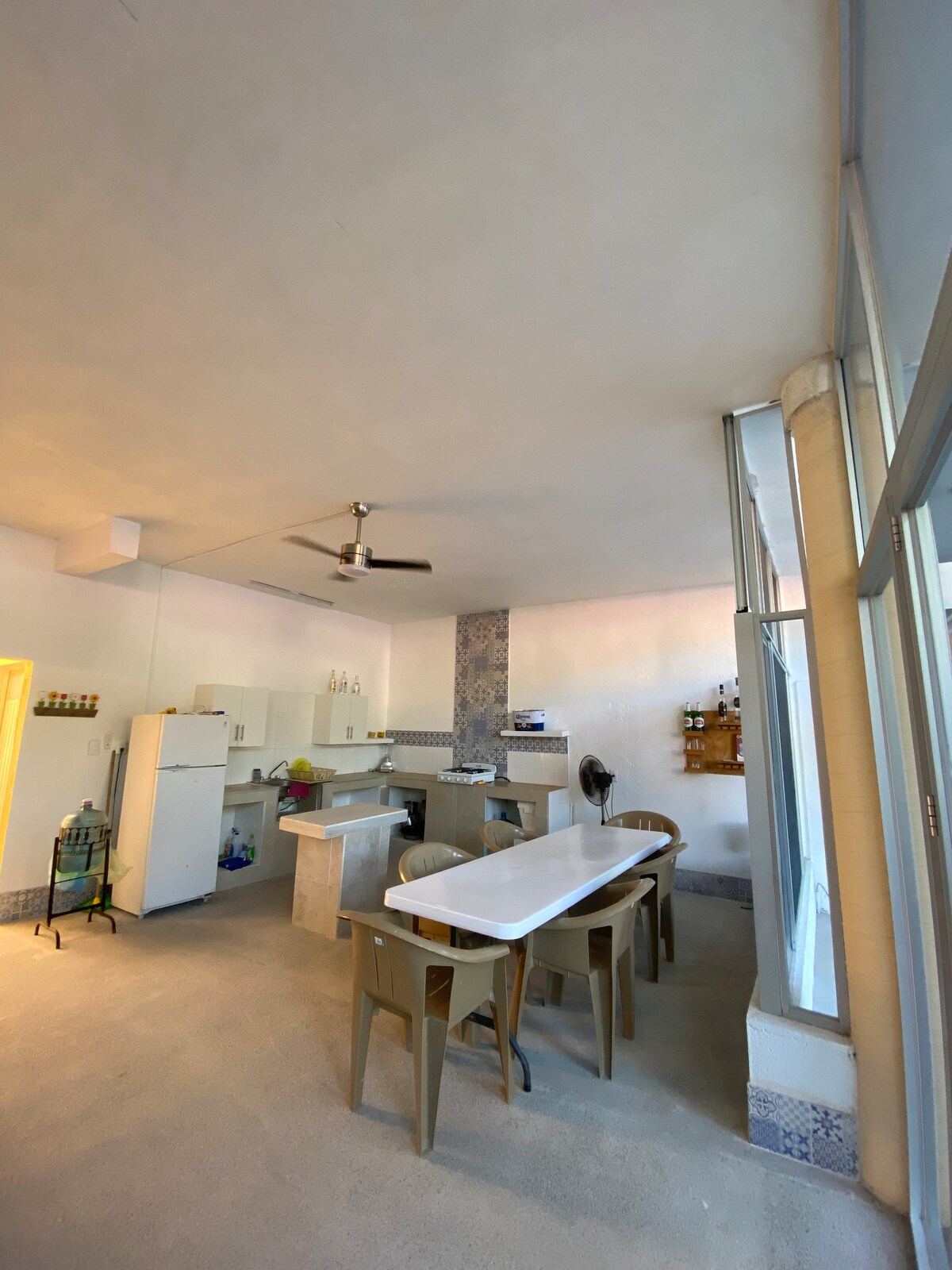 Welcome to Ocean Views! This newly renovated bungalow is the perfect place for your beach getaway. The shared common area has a small pool with swim up bar. Enjoy a mango from the mango tree - they're the tastiest you'll find. The outdoor space is great for outdoor dining and BBQs. Just down the street, you'll find a convenience store, bars, restaurants, and access to Playa Miramar. This bungalow is 1 of 3 houses within the property. Located 20 minutes from the Manzanillo/ZLO airport.