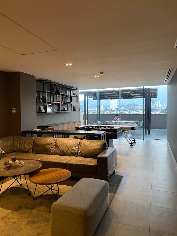 Wohnung mit einer ausgezeichneten Lage und guter Anbindung. 7 Minuten von Galerías Valle Oriente, 10 Minuten von San Pedro. Geräumige Wohnung mit 2 Schlafzimmern, 2 Doppelbetten, 2 Bädern, Wohnzimmer mit Smart-TV, voll ausgestatteter Küche, unglaublicher Aussicht und 2 Parkplätzen. Zu den Annehmlichkeiten gehören: Grills, ein Unterhaltungsraum, ein Veranstaltungsraum, ein Spielzimmer und private Räume mit Tischfußball und Tischhockey.