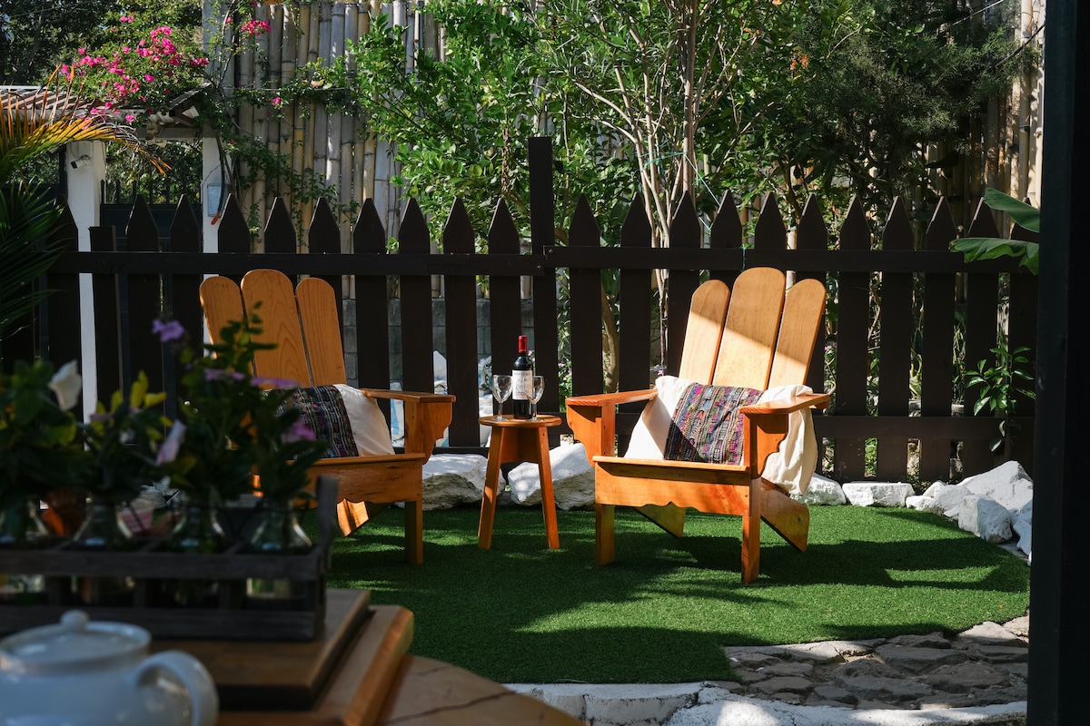 Enjoy breathtaking panoramic views of Lake Atitlán, its surrounding volcanoes, and mountains from your artisanally designed sanctuary. Wake up to epic sunrises and birdwatching while lounging on the sofa or your queen orthopedic mattress. The house features a chef-designed kitchen, handcrafted decor, WiFi, 1.5 baths, a hot shower, and easy access to hiking and yoga. A 7-minute walk or short tuk-tuk ride from central San Marcos. Ideal for couples, creatives, digital nomads, and nature lovers.