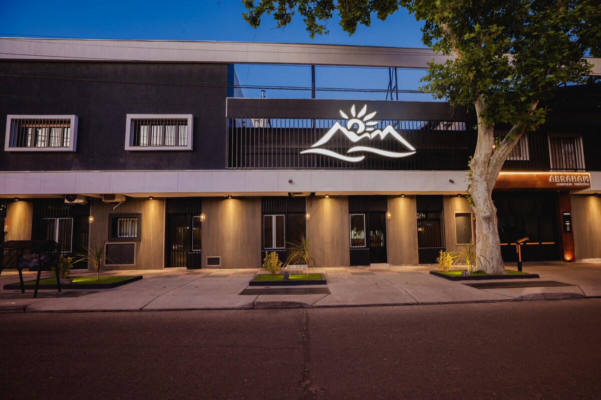 Hermoso departamento minimalista ubicado en el corazón de San Rafael, a tan solo 5 cuadras del Km 0 de la ciudad y a 8 cuadras de la terminal, en pleno centro. El departamento cuenta con conexión WIFI de alta velocidad, aire acondicionado, calefacción, Smart TV 4k 42" con cuenta de Netflix, HBOmax, Star+, Dinsey+ y Prime, cocina completamente equipada, heladera, microondas, tostadora, juguera eléctrica y pava eléctrica, sommier 2 plazas y servicio de blanco, work office y patio con parrilla.
