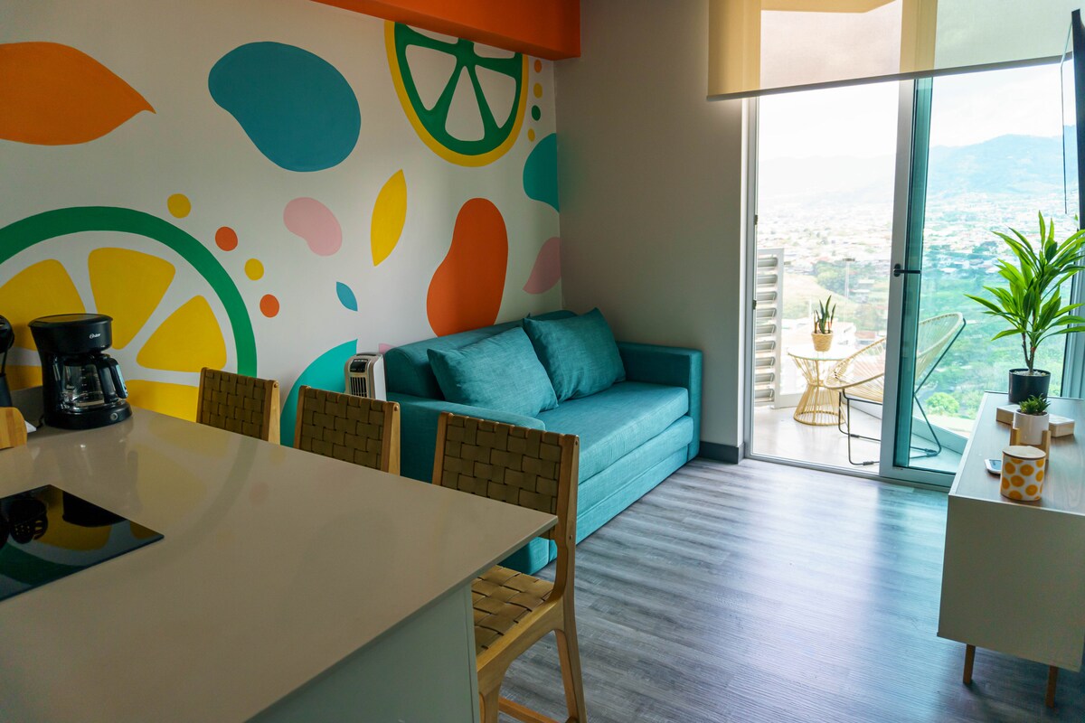 Professionell eingerichtete Wohnung liegt fünf Minuten von Escazú entfernt, einer pulsierenden Stadt mit Restaurants, Multiplaza Mall und dem besten privaten Krankenhaus (CIMA).30 Fahrminuten vom Flughafen entfernt. Sicherheit rund um die Uhr. Sie befindet sich im vierten Stock mit tollem Blick auf die Skyline von San Jose und die schönen Berge. Komplett ausgestattete Küche, Smart TV, Smart TV, Klimaanlage. Der Resortkomplex verfügt über einen Pool, ein Fitnessstudio, eine Lounge, einen Haustierpark und 2 eigene Parkplätze.