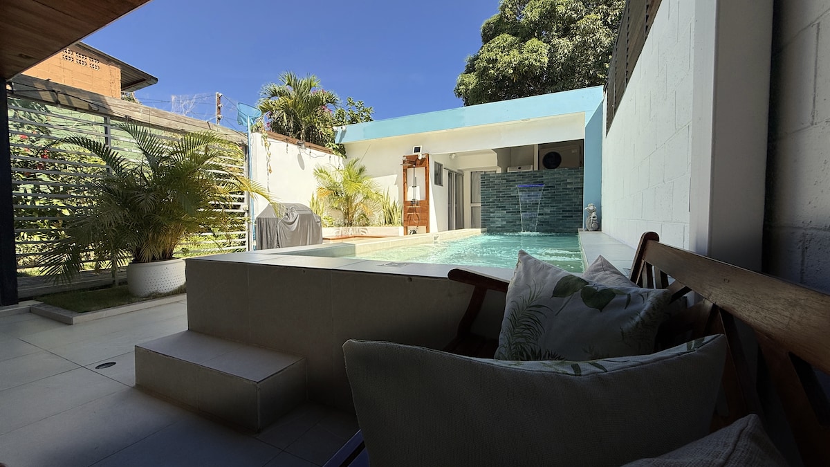 Willkommen bei Casa Maquilishuat! Ideal für eine Gruppe von 8 Personen, die in einem stilvollen, geräumigen, zentralen Haus mit privatem Pool und geräumiger Terrasse übernachten möchten. Das Haus verfügt über einen Fitnessraum und eine moderne Küche. Wir befinden uns hinter dem Estadio Cuscatlán, perfekt, um Veranstaltungen, Konzerte und Partys zu genießen. Dein ideales Zuhause zum Entspannen und Spaß haben!