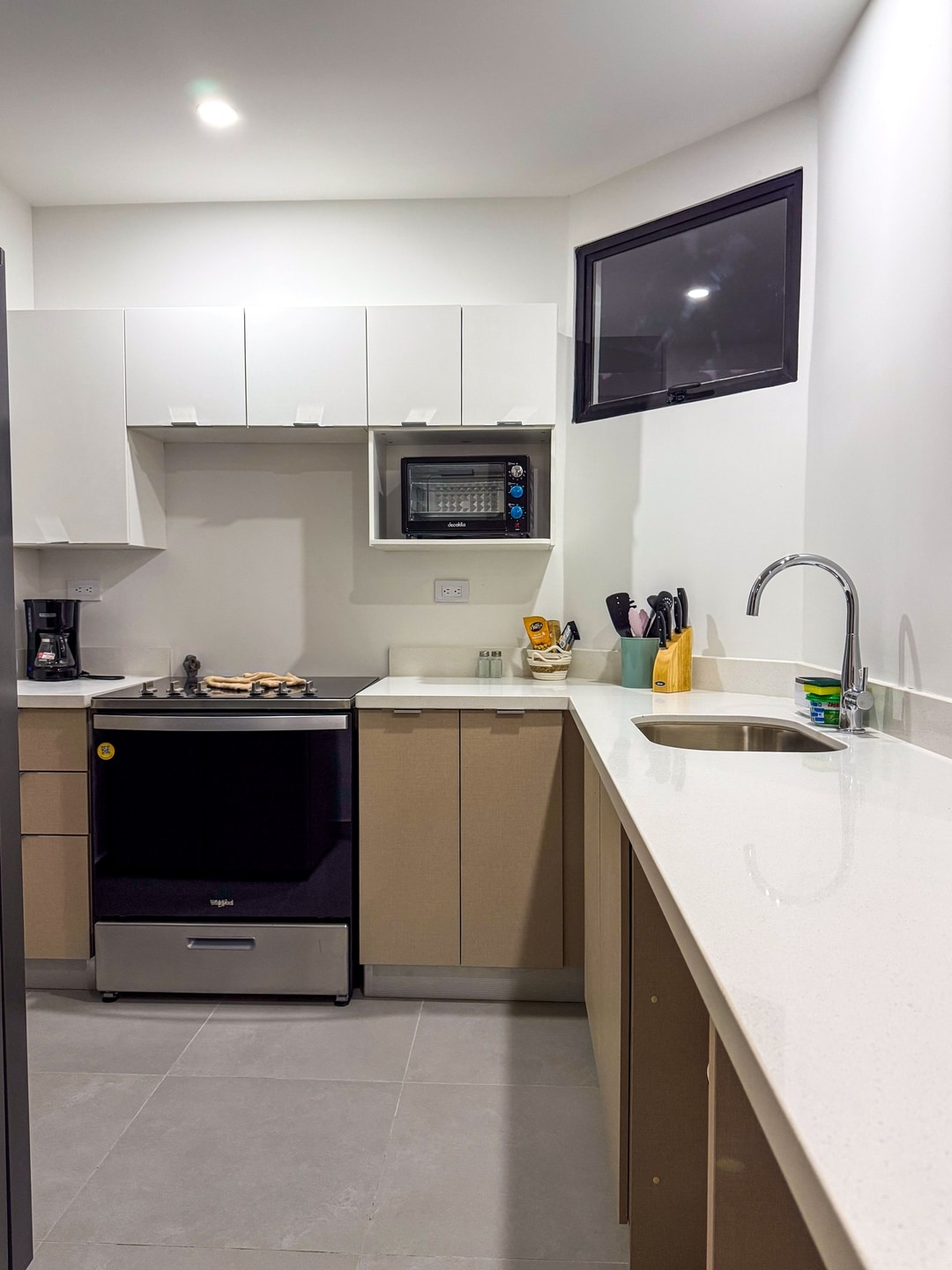 Apartment in the heart of San Benito, the city’s hotel and business district. Premium King bed with hotel-quality linens and a goose-feather duvet, sofa bed, air conditioning, 70” TV, fast Wi-Fi, equipped kitchen, access to a rooftop with full city views, assigned parking, and 24/7 security. Walk to restaurants, a supermarket across the street, and the building features an on-site shopping area with restaurants. Ideal for business travelers, couples, or longer stays.