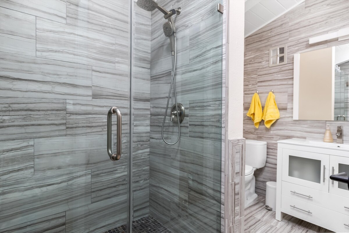 Genieße das Leben im Ranch-Stil, nur 5 Minuten von der Innenstadt von Cambria entfernt. Wir befinden uns direkt außerhalb des Küstennebelgürtels, sodass wir normalerweise perfekte Temperaturen und Sonnenschein haben, wenn es in der Stadt neblig ist! Obwohl es als „kleines Haus“ gilt, ist es sehr geräumig und verfügt über alle Annehmlichkeiten wie einen großen Kühlschrank, einen schönen Gasgrill, kostenloses Laden der Stufe 2 sowie eine Waschmaschine und einen Trockner in voller Größe. Du kannst auch eine kurze Wanderung unternehmen oder auf den Gipfel des Grundstücks fahren und einen Meerblick ganz für dich allein genießen!