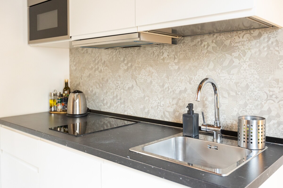 Wir freuen uns, dir unsere bezaubernde, brandneue und schöne 1-Zimmer-Wohnung vorstellen zu können, die mit hochwertigen Materialien in modernem Stil eingerichtet ist. Sie ist einfach perfekt für einen Aufenthalt, egal ob du ein Paar oder eine Familie mit einem Kind bist, die in den Urlaub kommen, eine Person, die auf Geschäftsreise kommt, oder ein Messebesucher. Unsere oberste Priorität ist immer der Komfort unserer Gäste, damit jeder einen tollen Start in seine Reise in einer gemütlichen und komfortablen Unterkunft haben kann. Wir freuen uns sehr darauf, dich willkommen zu heißen!