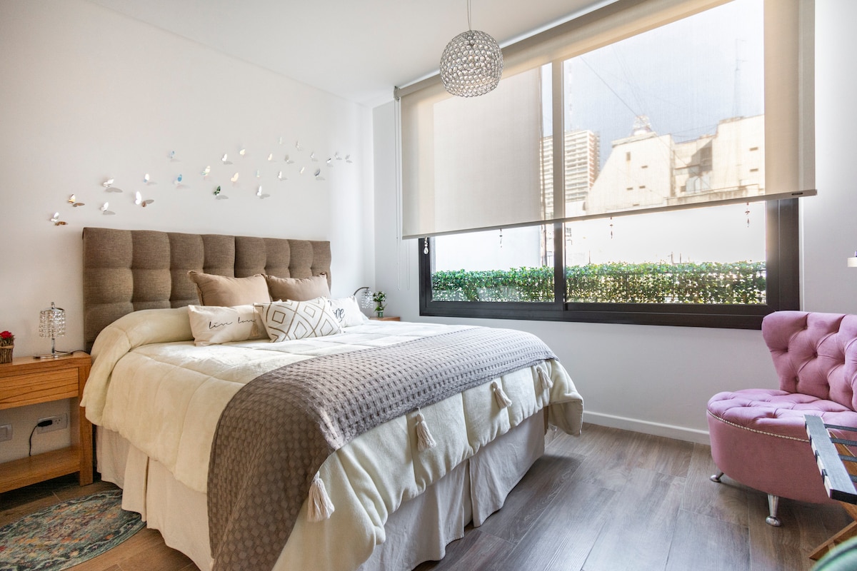 It is a luminous interior studio apartment of 28 m2, located in a new building and in one of the most central areas of the city, ideal for getting to know Buenos Aires on foot. It has a 43" smart TV, high-speed internet , a double bed ( of high quality) or 2 separate ones (0.80cm wide, 1.90m long) at the guest's choice, hot/cold air conditioning, safe, spacious, and modern bathroom. The building has solarium, gym and laundry.