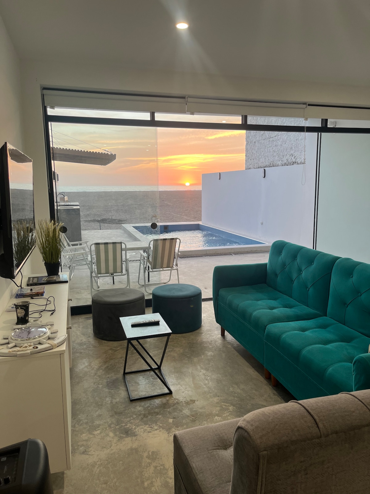 Bonita casa de playa en primera línea. Vista hermosa a toda la inmensidad del mar, desde la terraza, desde la cama y balcón principal, desde la cocina, desde la sala principal y sala de estar, desde la puerta cerca al bar. Relájate en un lugar tranquilo con brisa marina, cielo azul y sonido de las olas. Descansa en la hamaca, en las tumbonas Refréscate en la piscina! Internet Satelital Starlink, ideal para trabajo remoto, realiza videollamadas en HD (Zoom, Teams, Meet), toda la familia conectada