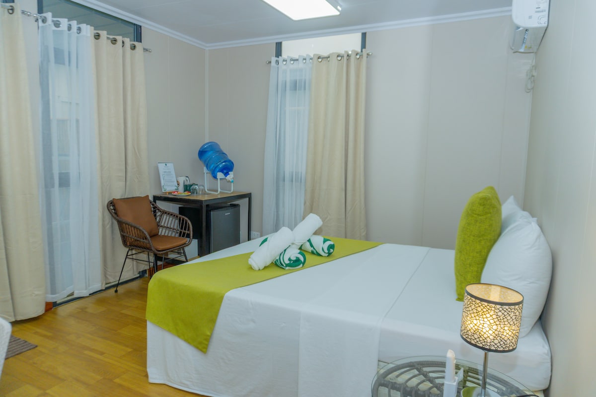 La Palapa Inn ist eine stilvolle Unterkunft, die dir einen sehr komfortablen Aufenthalt bietet! Jedes Zimmer verfügt über 3 Themen mit Terrasse oder Balkon (The Aqua, The Jungle und The Nature). Das Hotel liegt im Herzen von Port Barton, zwischen den Bergen und dem Meer, nur eine Minute vom Terminal, 5 Minuten vom Strand entfernt. Restaurants, Bars, Geschäfte und Markt sind in der Nähe. Du wohnst an einem ruhigen, abgelegenen Ort, eine gute Flucht vor Sorgen und Stress! * Poolplan von 9:00 bis 21:00 Uhr. Wir haben Starlink-Internet-WLAN.