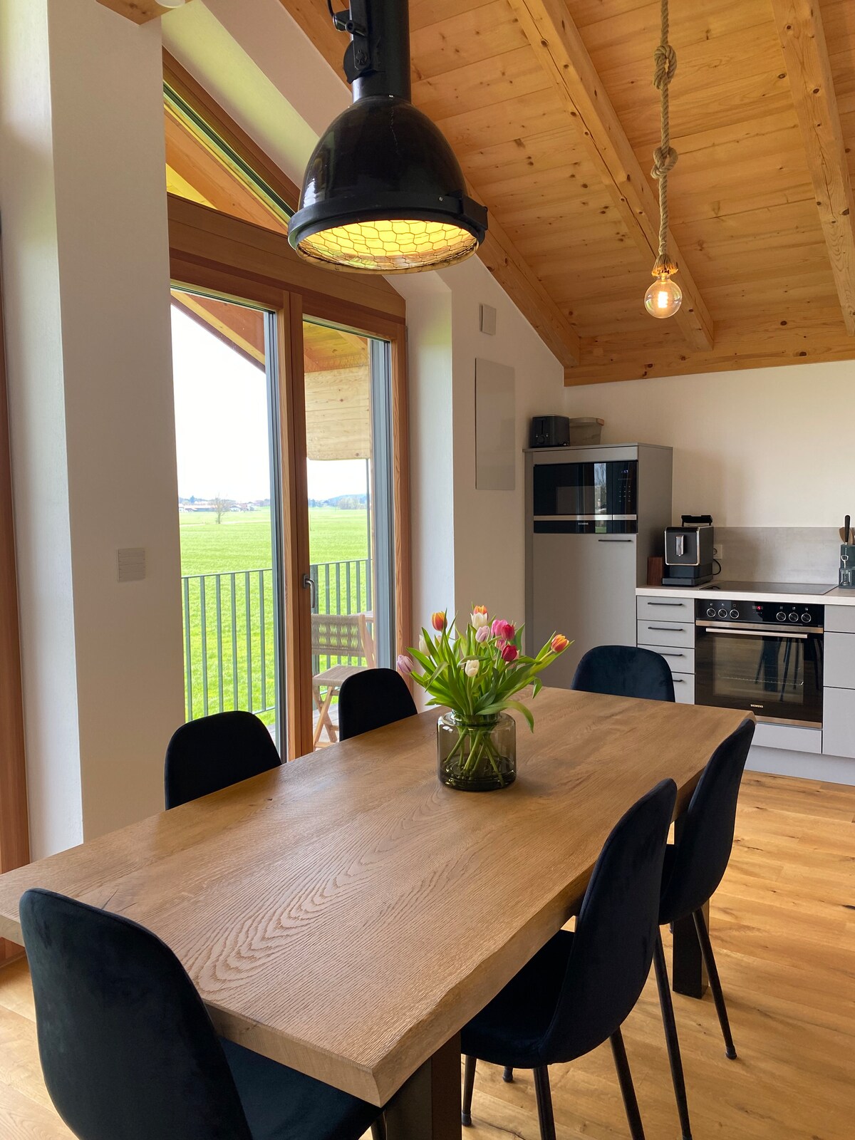 Erleben Sie unvergessliche gemeinsame Momente mit der Familie, Kinder oder Freunden in den Bergen, in der Natur, inmitten herrlicher Seen , hier findet jeder seinen Platz. Frühstück kann nebenan gebucht werden. Bäcker, Geschäfte sowie das Hallenbad mit Sauna und Bahnhof sind in wenigen Minuten zu Fuß erreicht. Wanderwege und Radtouren starten vor der Haustür. Entspannen Sie am gemütlichen Kamin oder auf der großen Balkonterrasse mit Panoramablick - E-Ladestationen am Haus -