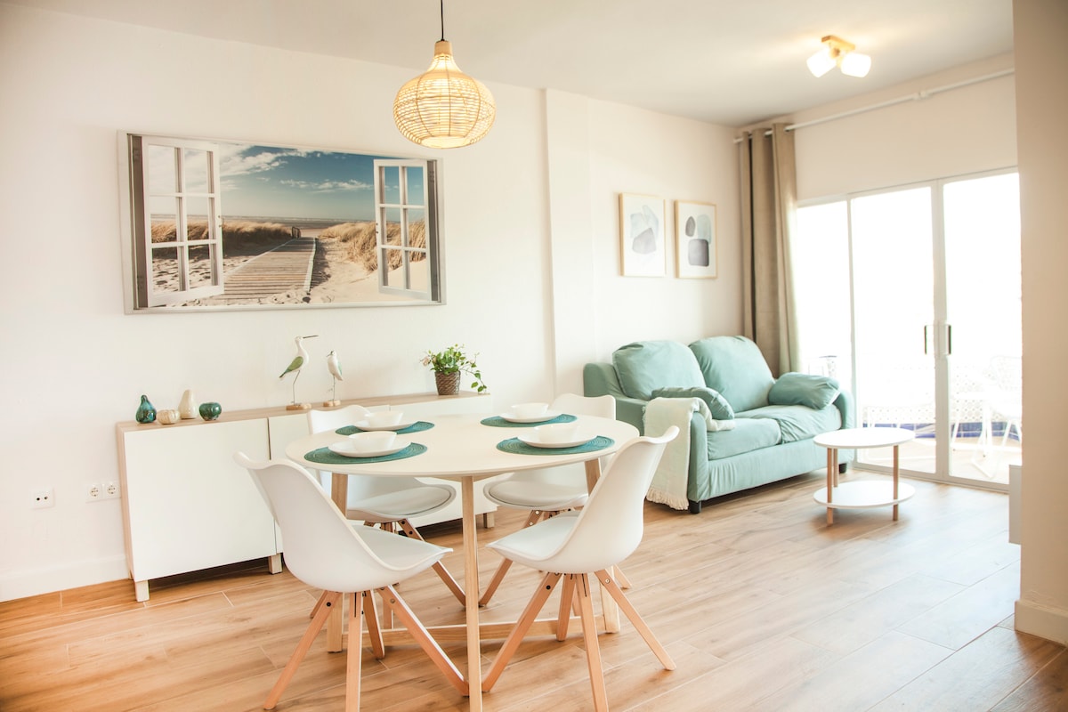 Eine ruhige Wohnung in einer idealen Urbanisation, um sich zu entspannen und dem weltlichen Lärm zu entfliehen, die Meeresbrise in seinem privaten Solarium von 40 m2 zu genießen, im Pool der Urbanisation zu baden und den Strand von Sanlúcar so nah wie möglich zu genießen, ohne lästige Geräusche zu erleiden. Ideal, um mit Ihrem Partner oder Ihrer Familie zu kommen: Doppelbett und Doppelschlafsofa. ACHTUNG: Ihre spiralförmige Steigleiter verhindert den Zugang in einem Trolley oder Rollstuhl oder eine eingeschränkte Mobilität.