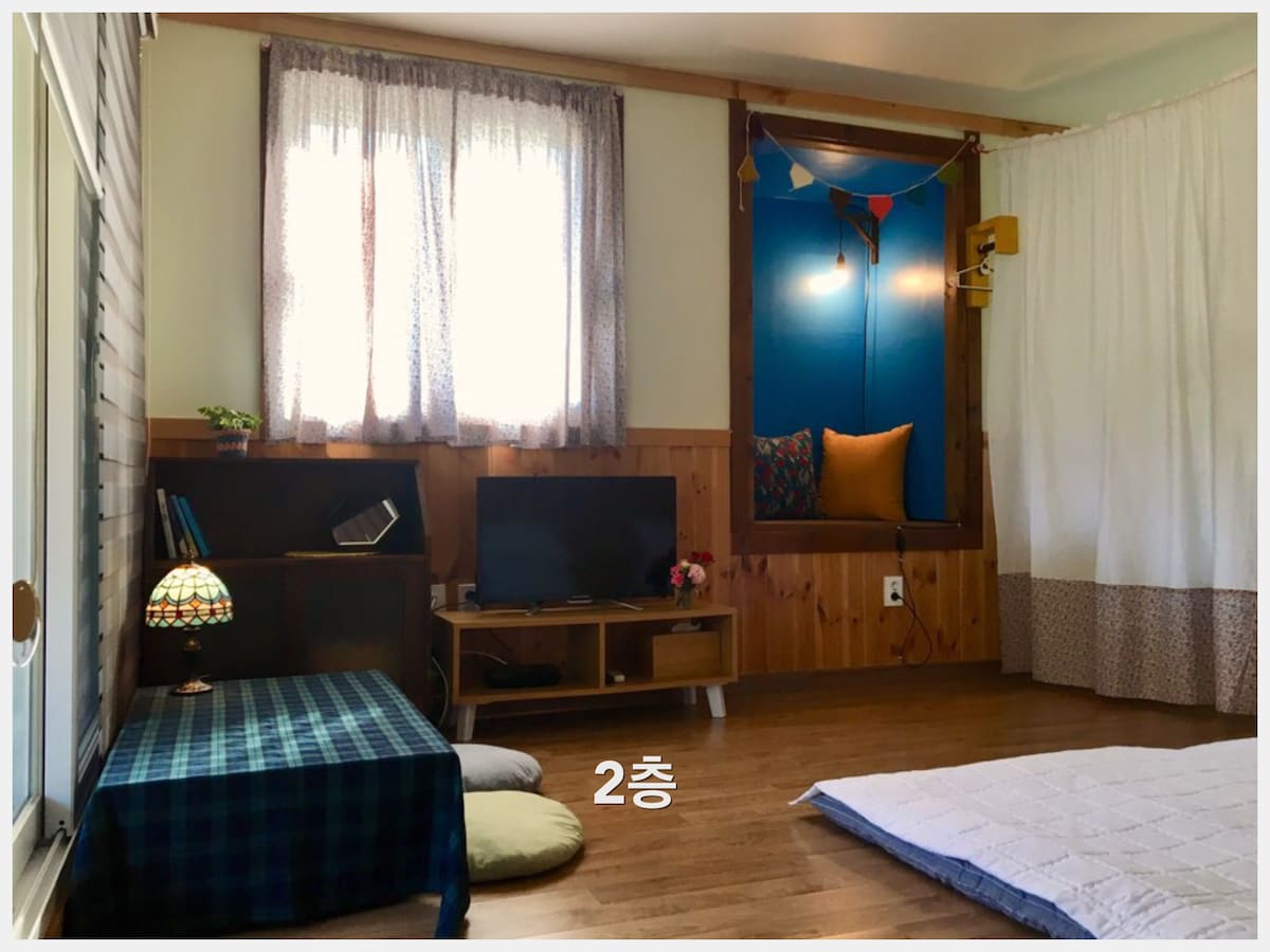 Dies ist eine private Unterkunft an einem ruhigen und gemütlichen Ort, an dem du 3 Gänge von Jirisan Dulle-gil sehen kannst. Der Gastgeber, der die Unterkunft verwaltet, wohnt im Unterhaus oder ist durch ein hohes Festival getrennt, daher ist es eine unabhängige Unterkunft, die Privatsphäre garantiert. Es ist kein Ort im Dorf, sodass du die Sterne genießen kannst, die nachts leise in den offenen Nachthimmel strömen. Lage: Es liegt 10 Autominuten von Jirisan IC und 5 Autominuten vom Inwol Bus Terminal entfernt. Wenn du eine Abholung vom Terminal benötigst, kontaktiere uns bitte im Voraus.
