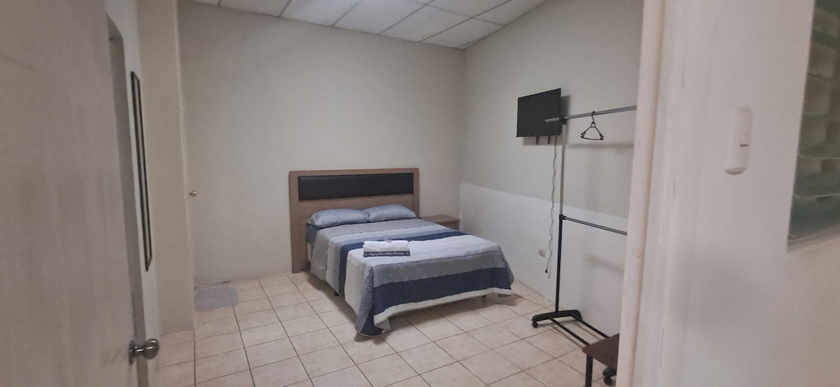 Es ist eine völlig unabhängige Wohnung mit geräumigem Zimmer, Küche und Garten. Ein Bad mit eigenem Bad. Klimaanlage im Wohnzimmer und Schlafraum. Das Zimmer verfügt über ein Bett für zwei Personen und ein Stockbett für drei Personen. Das Zimmer verfügt über ein Schlafsofa. 5 Minuten vom Restaurantbereich Metrocentro und Santa Ana entfernt.