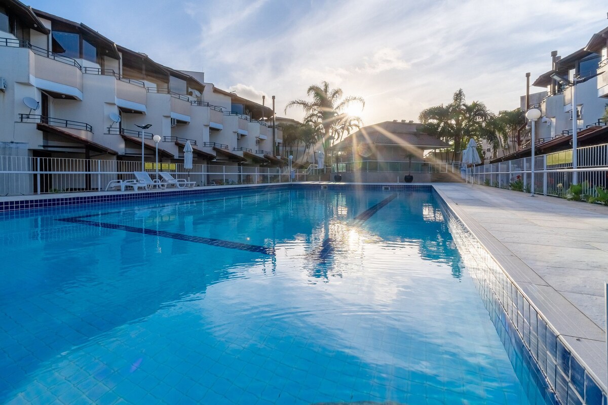 Belo sobrado a beira da praia em condomínio clube com piscina, academia e muito mais. Infraestrutura completa de clube para sua família ter dias inesquecíveis. Casa confortável com 3 quartos todos com ar condicionado e varanda. Pátio externo com rede e carregamento para carros elétricos incluso. 2 vagas de garagem disponíveis. Acesso fácil a praia, restaurantes, mercados e toda estrutura necessária para férias incríveis. Capacidade para até 7 pessoas bem acomodadas.