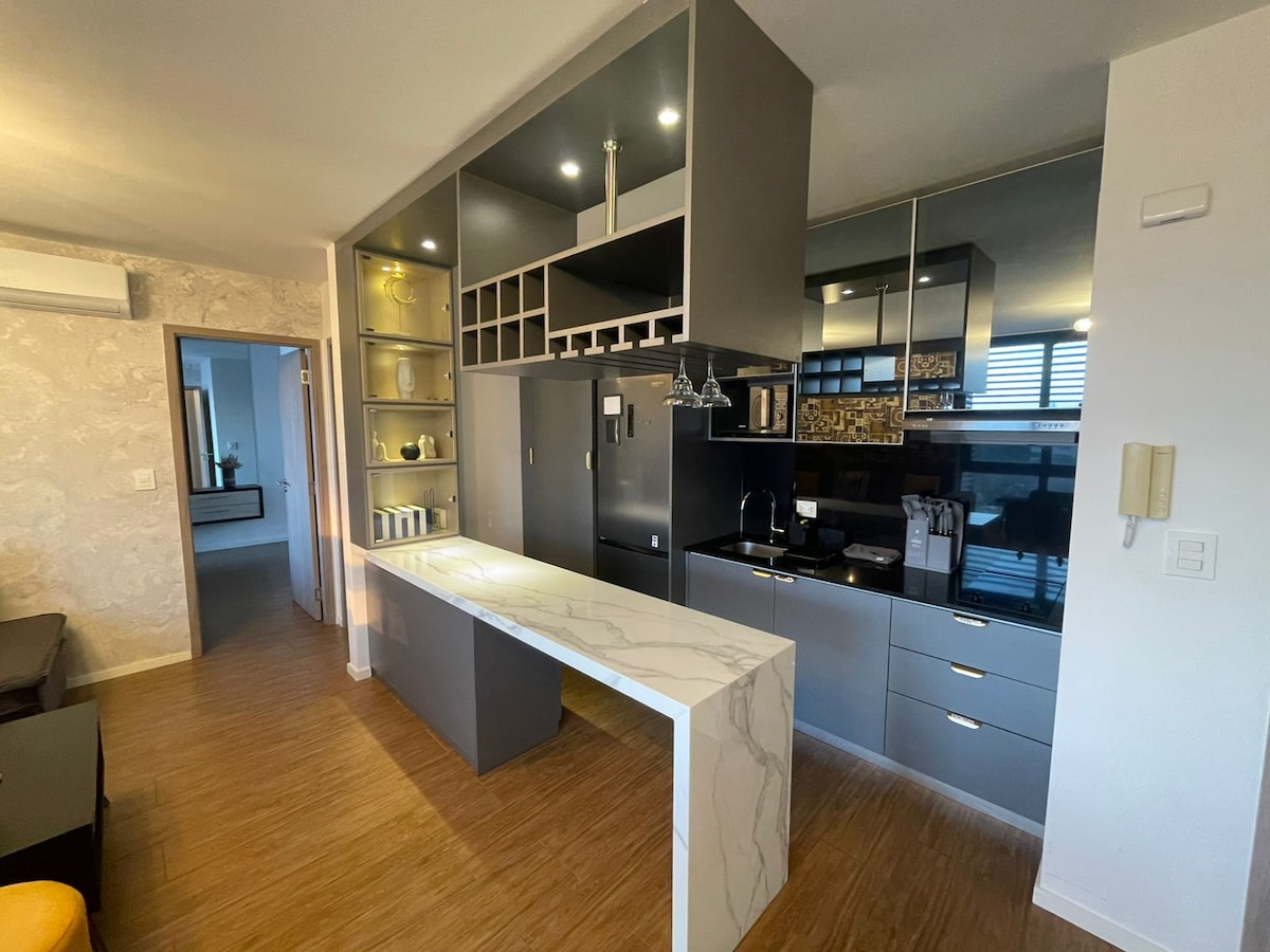 Descubre un refugio de lujo en una zona residencial tranquila. Este departamento de 1 dormitorio ofrece un diseño contemporáneo y amplitud que se nota en cada detalle: espacios iluminados, cocina completamente equipada. Un lugar pensado para tu descanso y comodidad, con cama queen, amplios armarios, lavadora, Tv en living y dormitorio. Ubicación privilegiada cerca de Malls, restaurantes, farmacias y supermercados. Disfruta de confort total y privacidad.