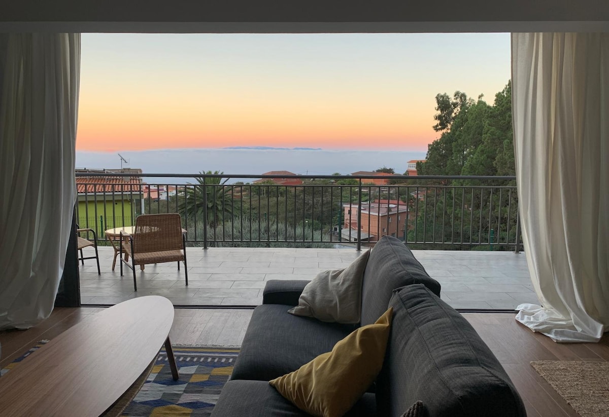 Es verfügt über Glasfaser mit 501 MB und Arbeitsbereiche. Es befindet sich in einer privilegierten Umgebung zwischen Weinbergen und Obstbäumen mit einer unvergleichlichen Aussicht. Auf der einen Seite hat man einen einzigartigen Blick auf das Meer und die Roques de Anaga (mit magischen Sonnenuntergängen) und auf der anderen Seite auf La Cordillera, die Teil des ländlichen Parks von Anaga ist, der von der UNESCO zum Biosphärenreservat erklärt wurde. Der nächste Nachbar ist 100 Meter entfernt. Wenn Sie Ruhe und Privatsphäre suchen, abschalten und die Natur genießen möchten, ist dies der ideale Ort.