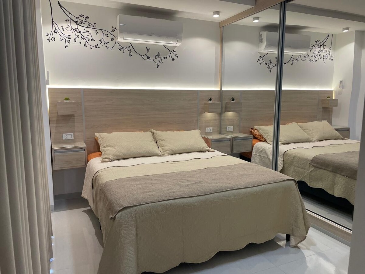 Dejate seducir por la elegancia, confort y modernidad en la mejor zona de Santa Cruz. En el departamento contarás con: - TV Smart - Aire acondicionado - Cocina equipada - Ropero - Lavadora y secadora - Cama y sofa cama Además en las áreas sociales tendrás: - Piscina y jacuzzi - Gimnasio - Sauna vapor y seco - Cine - Billar, futbolines y áreas de descanso - Área de trabajo con sala de reuniones - Churrasqueras con TV y frigobar Vive la experiencia y reserva ya!