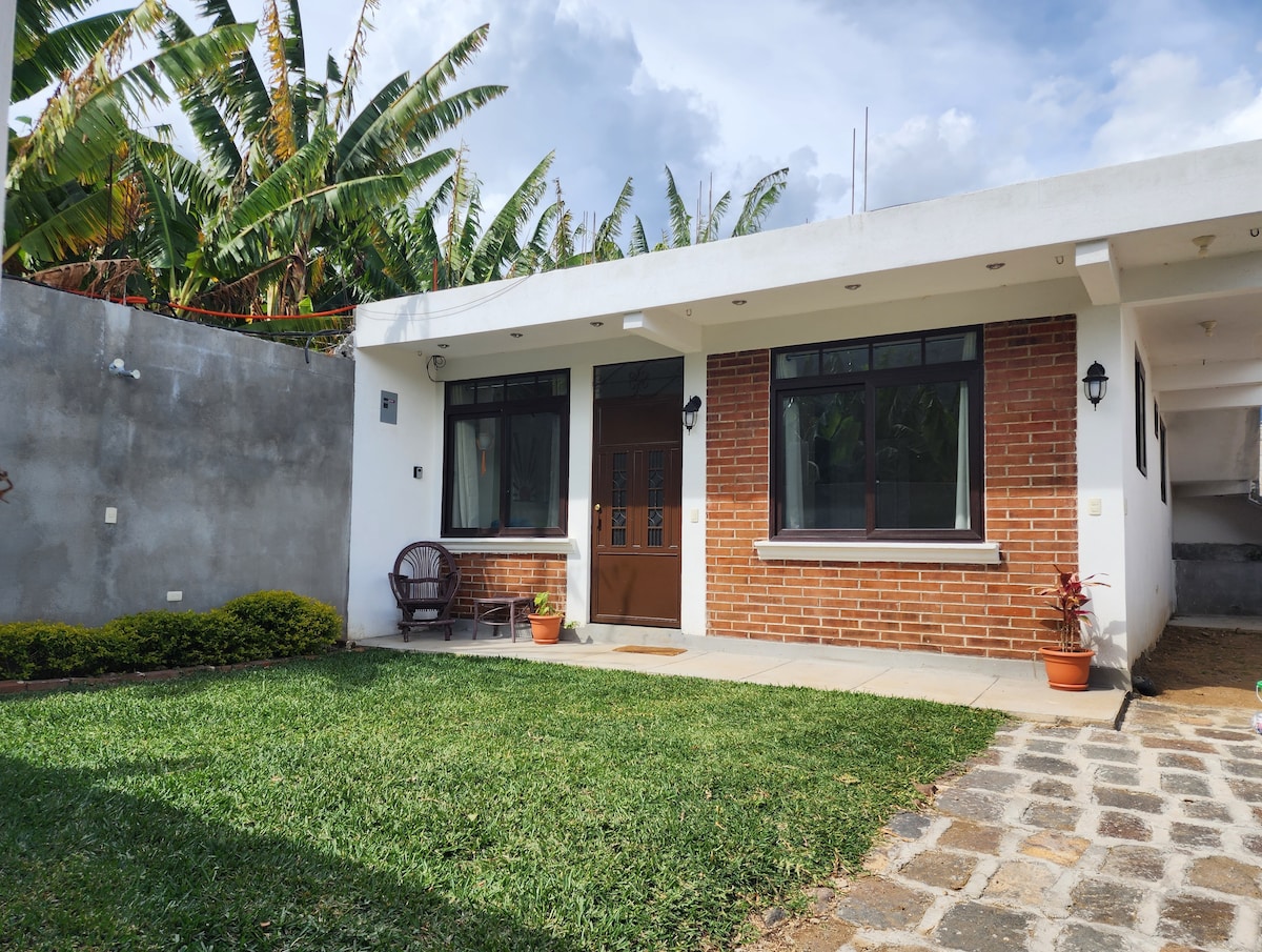Versteckt im ruhigsten Teil von San Marcos findest du die beste Aussicht auf den See und den Vulkan. Genieße die oberste Etage eines schönen 3-stöckigen Hauses im Kolonialstil mit 2 geräumigen Schlafzimmern, einem großen, komfortablen Wohnzimmer mit umlaufendem Sofa und Kamin, einer voll ausgestatteten Küche und einem üppigen Garten. Ein 7-minütiger Spaziergang zum Zentrum – genieße alle Vorteile des Lebens in San Marcos ohne die potenziell chaotischen Nächte in der Nähe des Stadtzentrums. Schlafe zum Zirpen von Insekten ein und wache zum Vogelgesang auf.