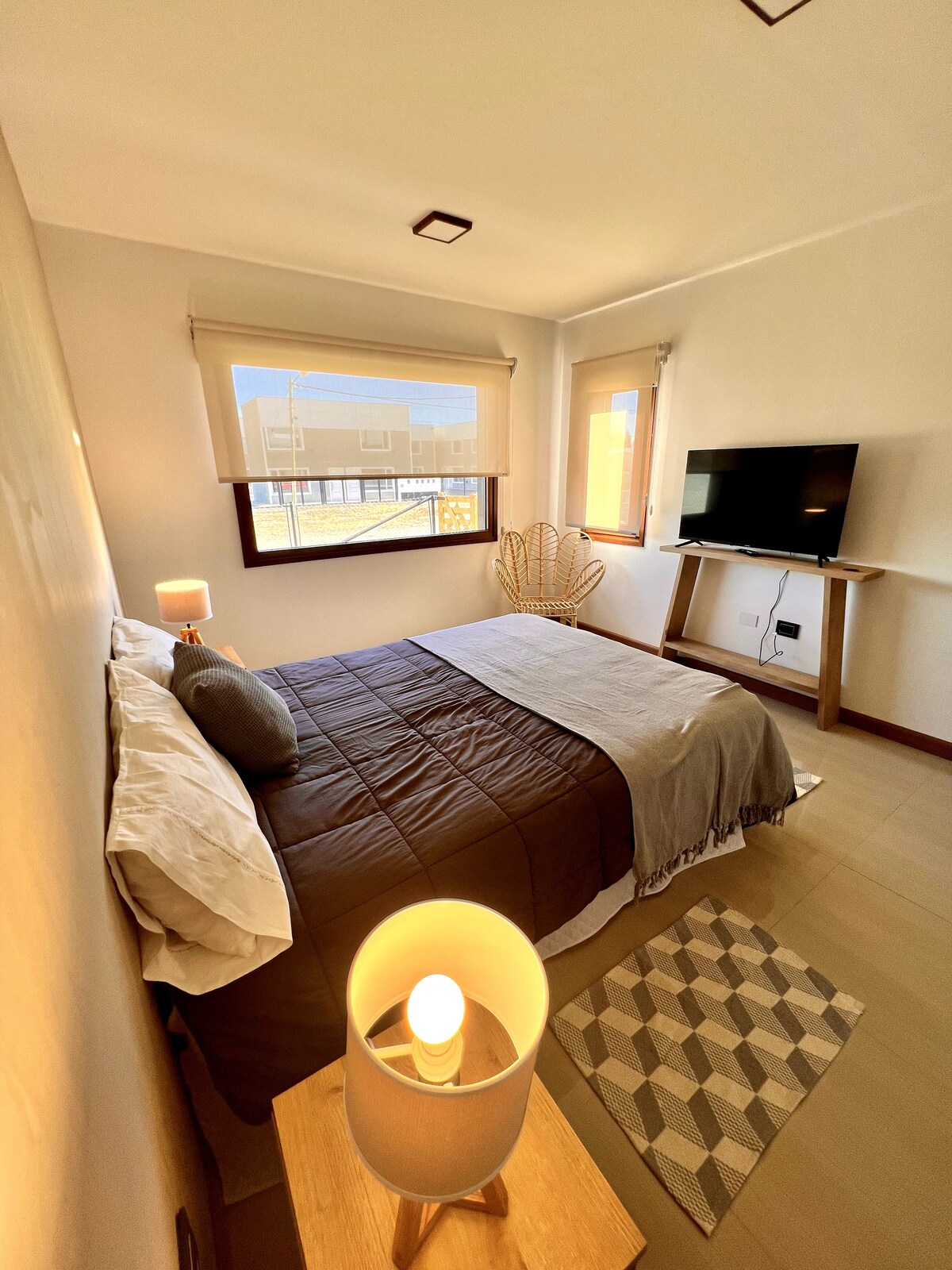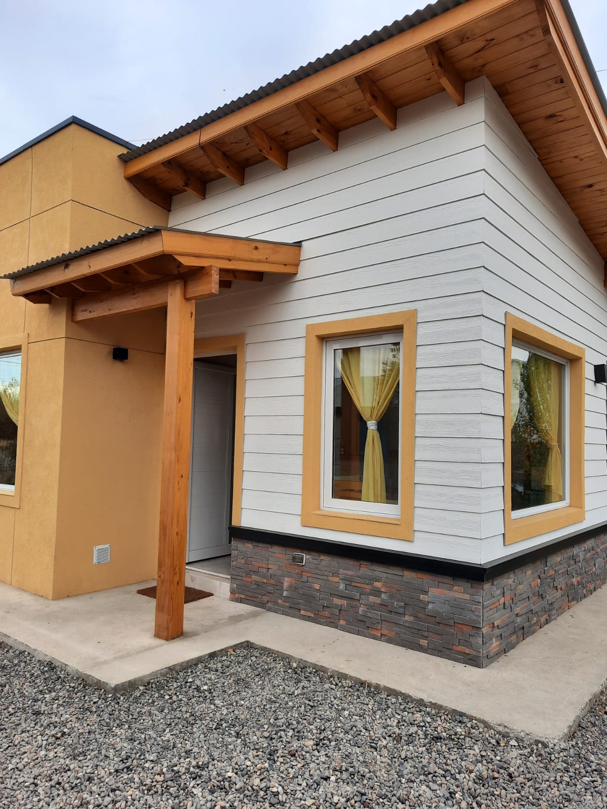 Casa a estrenar 5 huespedes habitacion matrimonial cama individual sillon tedy para 2 personas cocina equipada , toallas , wifi , estacionamiento ,tv , ante baño , baño y ducha , calefaccion , vistas panoramicas y vista al lago