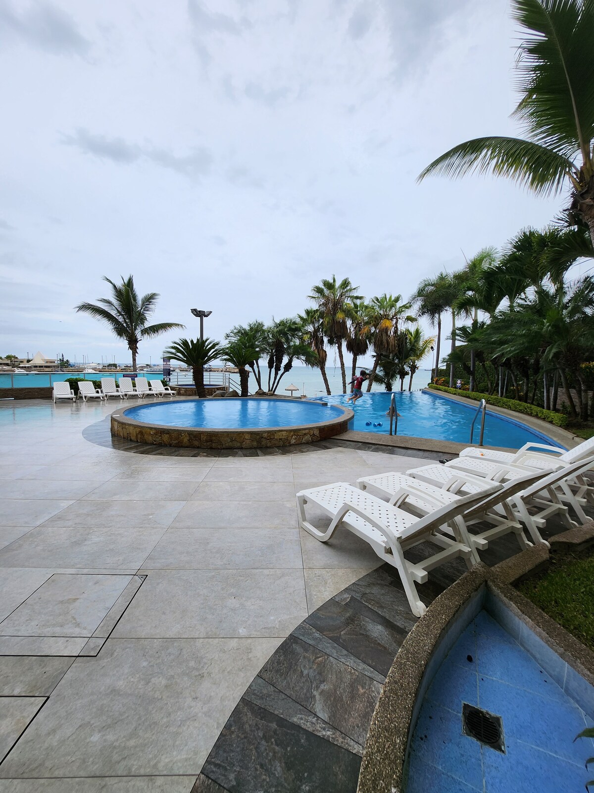 Great resort like home! Pool with a Slide and volley ball net, Jacuzzi, ocean front, with plenty of spaces for relaxing and enjoying the beach weather. This complete home has very spacious living areas and play room. Internet works great and in a pieceful area. The pictures speak for the home. The beach is calm and water is safe for swimmers. We have chairs and tent for the sun. The guard will be able to help you with all details of your stay.