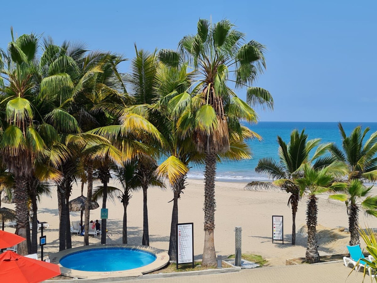 Life is about moments! Build memories to treasure in our unique beach front spot with pool, free parking and great views. Enjoy local & international cuisine at Montanita & Olon (5 to 7 mins away) or find an adventure near by (paragliding, waterfalls, snorkling, surf lessons) Enjoy our modern & cozy beach place, where you will find a fully equipped kitchen, comfy rooms and nice balcony chairs to enjoy breath taking ocean views! 65’ Smart TV at living room + beach tent & chairs included!