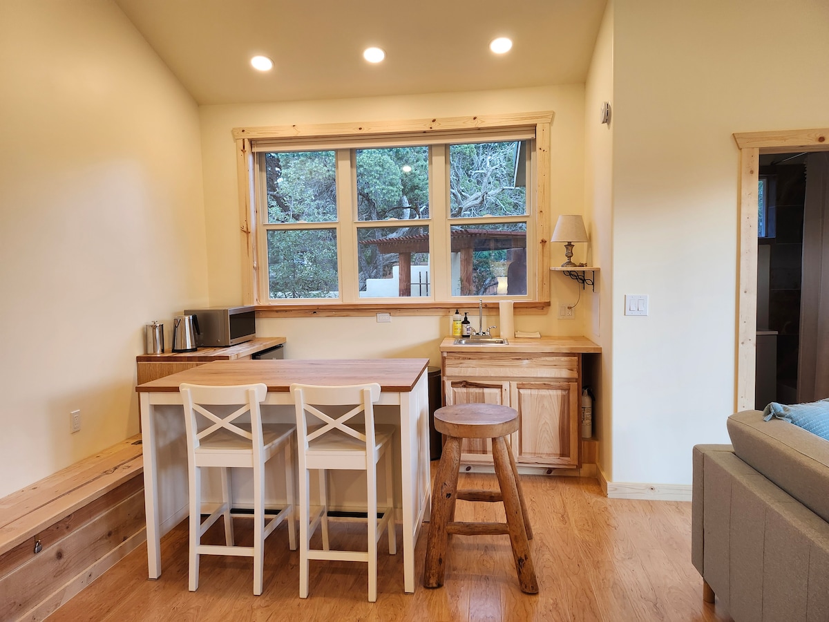 This beautiful custom-built studio casita is perfect for a peaceful getaway with spectacular mountain sunset views, just 19 miles from Santa Fe Plaza. Escape the bright lights of the city and relax under the brilliant star-filled sky. On winter nights, cozy up by the indoor kiva fireplace. Just steps away from a vast network of hiking trails. 2-dog limit under 30 lbs each. Dogs over 30 lbs will be charged an extra nightly fee; please inquire with the host before check-in.