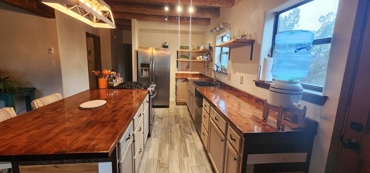 Escape to the countryside in our charming 3-bedroom, 2-bathroom house nestled on 9 acres of private land just outside Santa Fe. Relax on the front or back deck surrounded by juniper trees and stunning sunsets. Inside, enjoy an open kitchen, cozy fireplace, and a luxurious soaking tub. Explore nearby breweries (Beer Creek, Mine Shaft, SF Brewing), or venture in to Santa Fe or the eclectic town of Madrid, both just 10 minutes away. Please note: The Santa Fe Plaza/Downtown is about 20 minutes away.