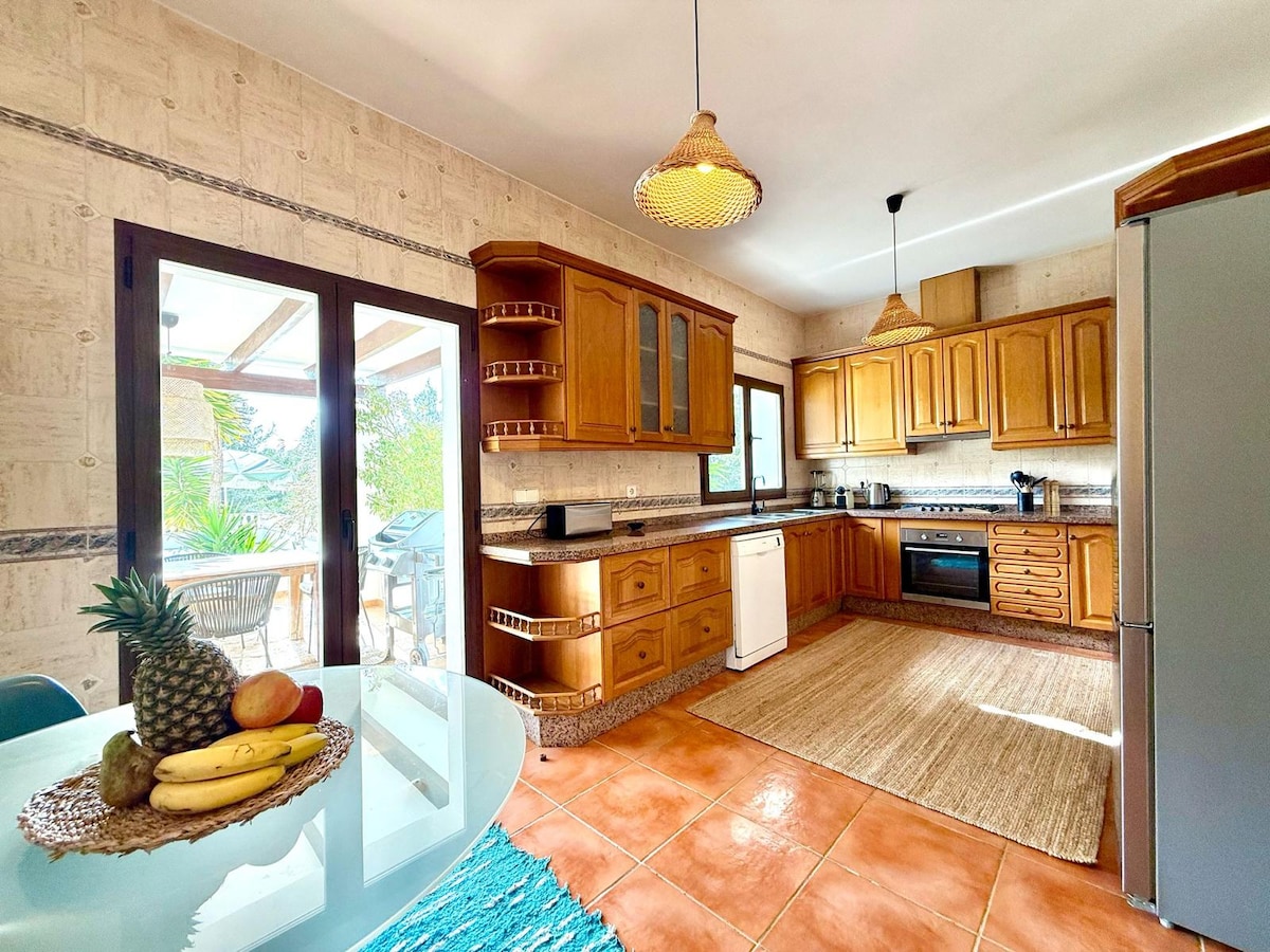 Schönes und sauberes, im skandinavischen Stil eingerichtetes Haus mit großem Pool. Vollständig umzäunt und sicher. 2 Autominuten von der schönen und charmanten Santa Gertrudis, einem lebendigen Pueblo voller erstaunlicher kleiner Restaurants, Cafés und guter Spielbereiche für Kinder. Die meisten Strände sind innerhalb von 10-15 Minuten mit dem Auto und 10 Minuten zu Fuß vom neuen Soho House entfernt. Perfekter Ort für dich und deine Familie. Grill. Klimaanlage und WLAN im gesamten Haus. Super kinderfreundlich (Trampolin und großer Wald zum Herumlaufen)