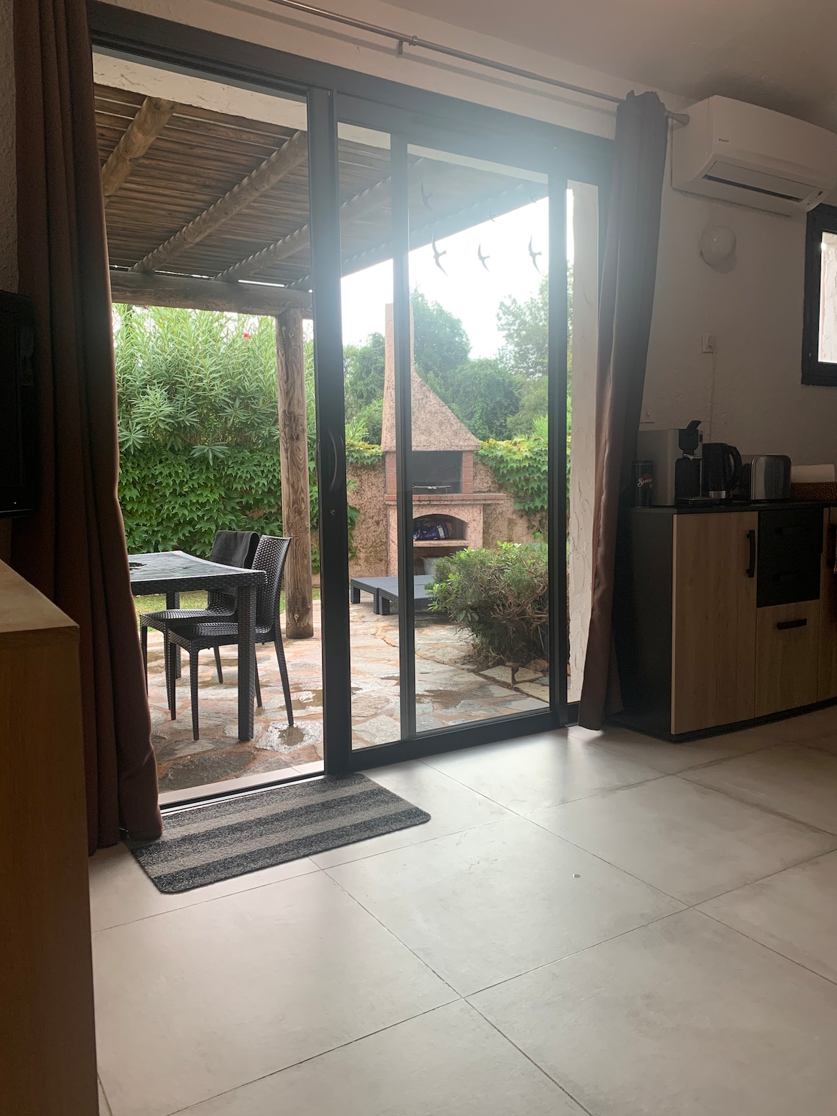 Klimatisierte Mini-Villa ohne Gegenüber mit Panoramaterrasse am Strand von Santa-Giulia (2 x 34 m²), die Anfang 2025 komplett renoviert wurde. - Kostenloses privates WLAN für Freizeit/distanzierte Arbeit - Wohnzimmer/Voll ausgestattete Küche (Nespresso-Kaffeemaschine), darunter Geschirrspüler, Smart-TV und bequemes Schlafsofa von 140 x 200 cm. - Zimmer mit Bett 140x190 - Bad/WC mit Waschmaschine - Bettwäsche wird zur Verfügung gestellt (Bettwäsche, Handtücher, Geschirrtücher) Strand 11 Minuten zu Fuß, Porto-Vecchio 12 Minuten mit dem Auto.