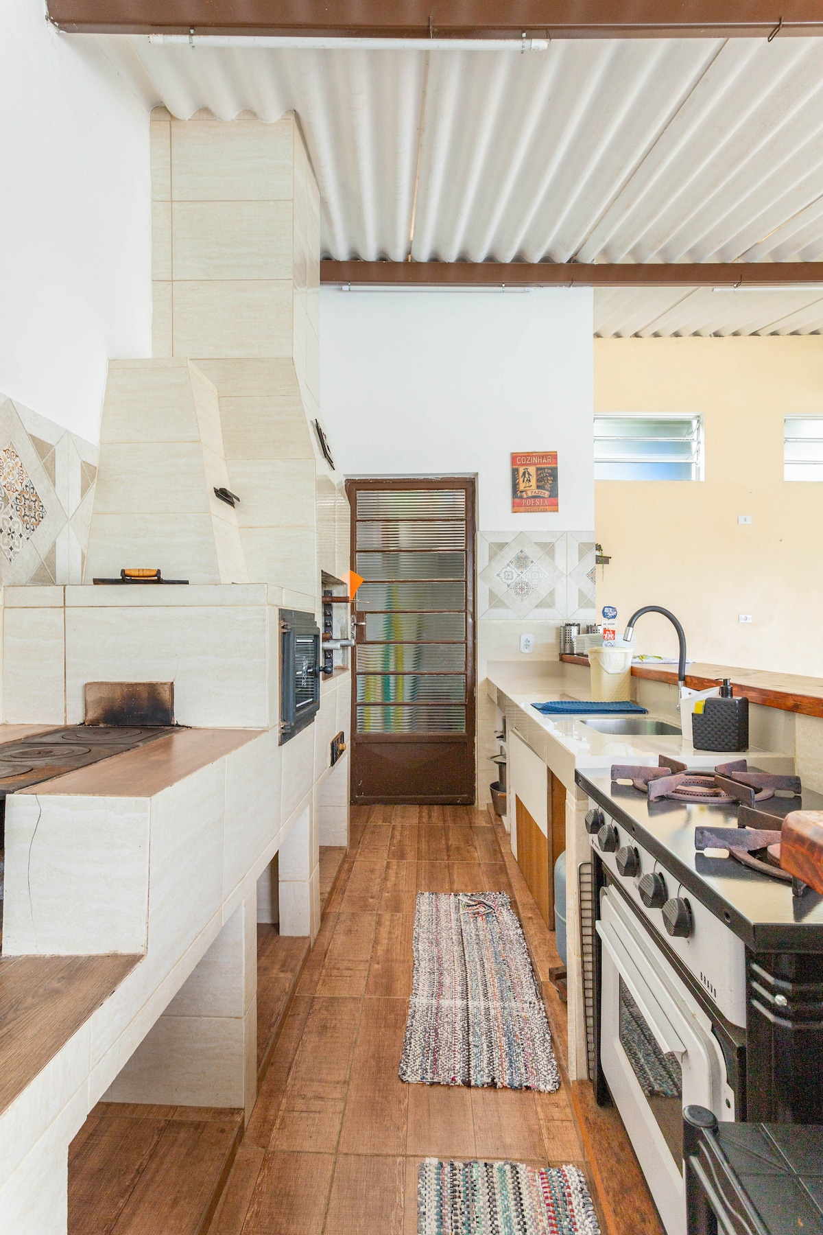 lofthaus 🏡 im Loft-Stil in einem Bauernhausviertel, leicht zu Rod. Dutra und Ayrton Sena. Asphalted Road zum Tor. Großer Raum, mit Schlafzimmer, Wohnzimmer und Küche kombiniert, geräumiges Badezimmer. Die Küche ist für dich ausgestattet, damit du deine Mahlzeiten zubereiten kannst. Gourmetbereich: Grill, Pizzaofen und Holzofen. Pool mit Wasserfall. ALLES PRIVAT. Haustiere sind willkommen, gegen eine kleine Reinigungsgebühr. Akzeptierte Tagesnutzung - siehe Werte und Bedingungen. KOSTENLOSES CHECK-OUT FÜR AUFENTHALTE ÜBER 2 NÄCHTE.
