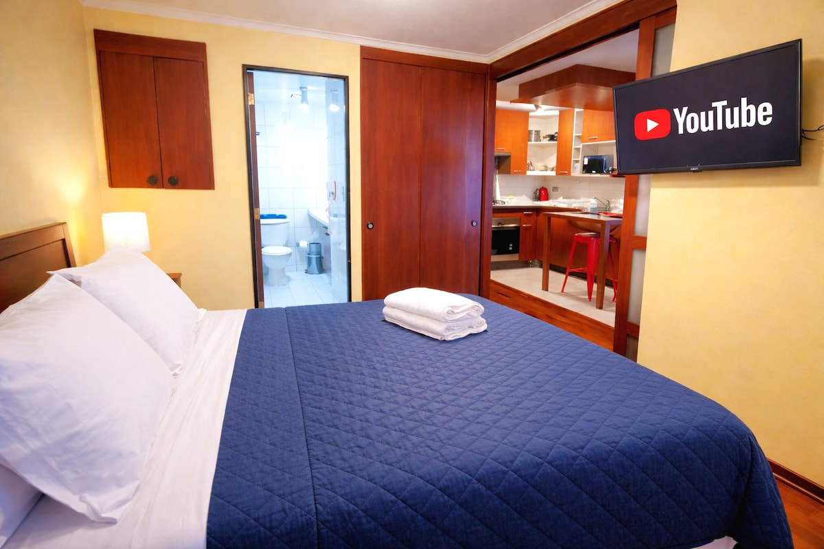 📍 Ubicación estratégica, Conexión de Metro ✅ Cafe de Bienvenida ✅ Al lado de un Gran Supermercado, ✅ conserjería y vigilancia las 24 horas. ✅ Ubicado en Barrio Bellas Artes 1 cuadra de Lastarria. ✅ Cómodas y modernas camas con sábanas de alta calidad ✅ Smart TV y cable, 🛜 Excelente WiFI gratis. Facilitamos sábanas, toallas, jabón de mano, y papel higiénico de bienvenida. ESTACIONAMIENTO con costo adicional.