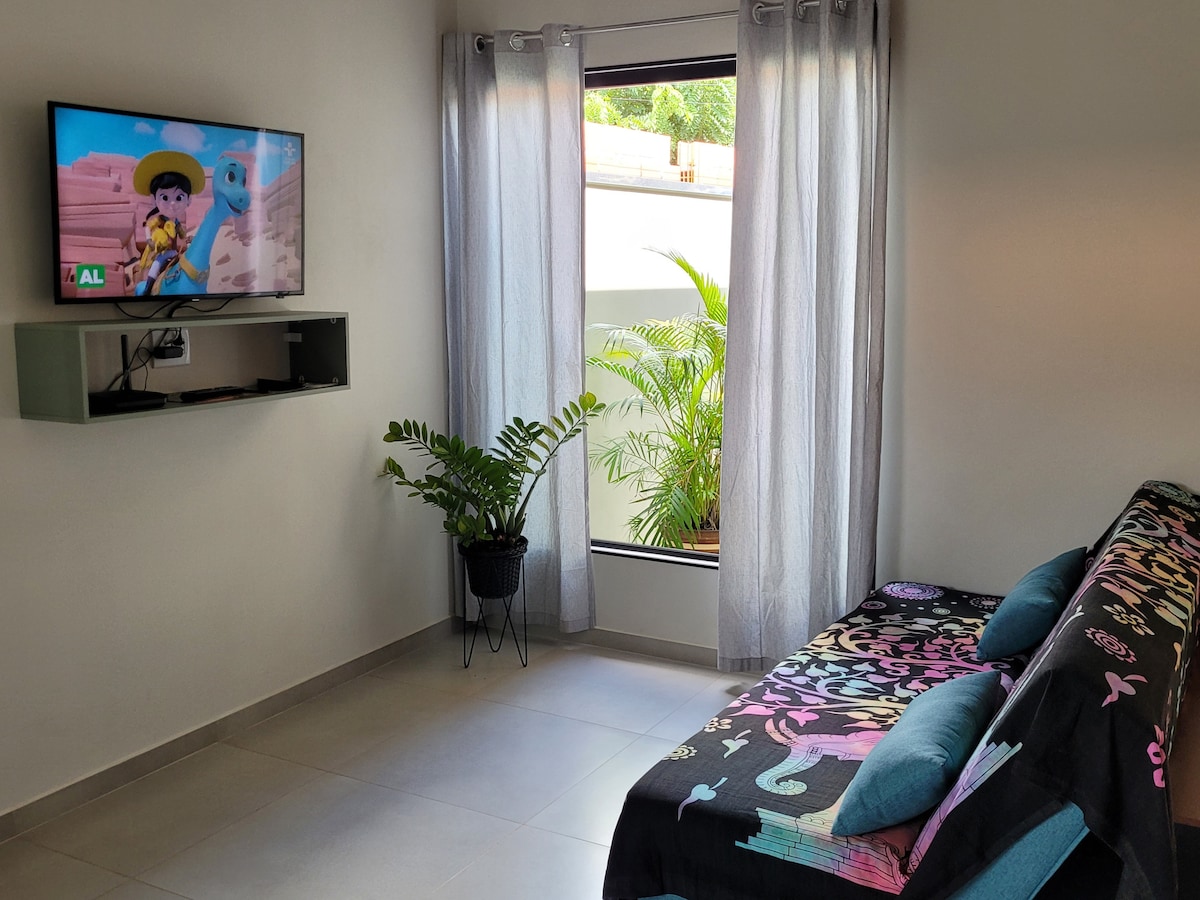 Haus im Stadtteil Jupia, im Herzen von Piracicaba, mit einem Doppelbett, einem Einzelbett, einem Schlafsofa und einer Matratze, WLAN, Klimaanlage im Wohnzimmer und Deckenventilator in den Schlafzimmern. Privilegierter Blick auf die Stadt, in der Nähe von Bars, Restaurants , Supermarkt , 8 Minuten vom Einkaufszentrum, 10 Minuten von der Innenstadt, 25 Minuten vom Thermas Water Park und 10 Minuten vom Pq der Rua do Porto entfernt. Ruhige Nachbarschaft. Enthält zwei voll ausgestattete Küchen, Grill, Swimmingpool, Waschküche, Wohnzimmer mit TV, Balkon und Homeoffice-Bereich.