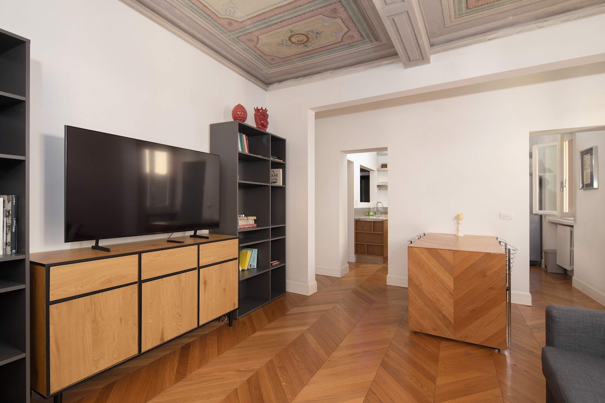 Wunderschön renovierte Wohnung aus dem 17. Jahrhundert mit Klimaanlage in jedem Zimmer, die modernen Komfort und antiken Charme verbindet. Original Terrakotta-Böden und Steintreppen erhalten. Von den Fenstern aus genießen Sie einen atemberaubenden Blick auf die Kuppel der Synagoge, ein unvergesslicher Anblick. Eingebettet in das authentische und lebendige Viertel Sant'Ambrogio, in der Nähe von Märkten und Restaurants, verfügt es über eine voll ausgestattete Küche, eine Waschmaschine, superschnelles WLAN und Netflix. Wir haben auch ein weiteres schönes Inserat mit ähnlichen Eigenschaften!