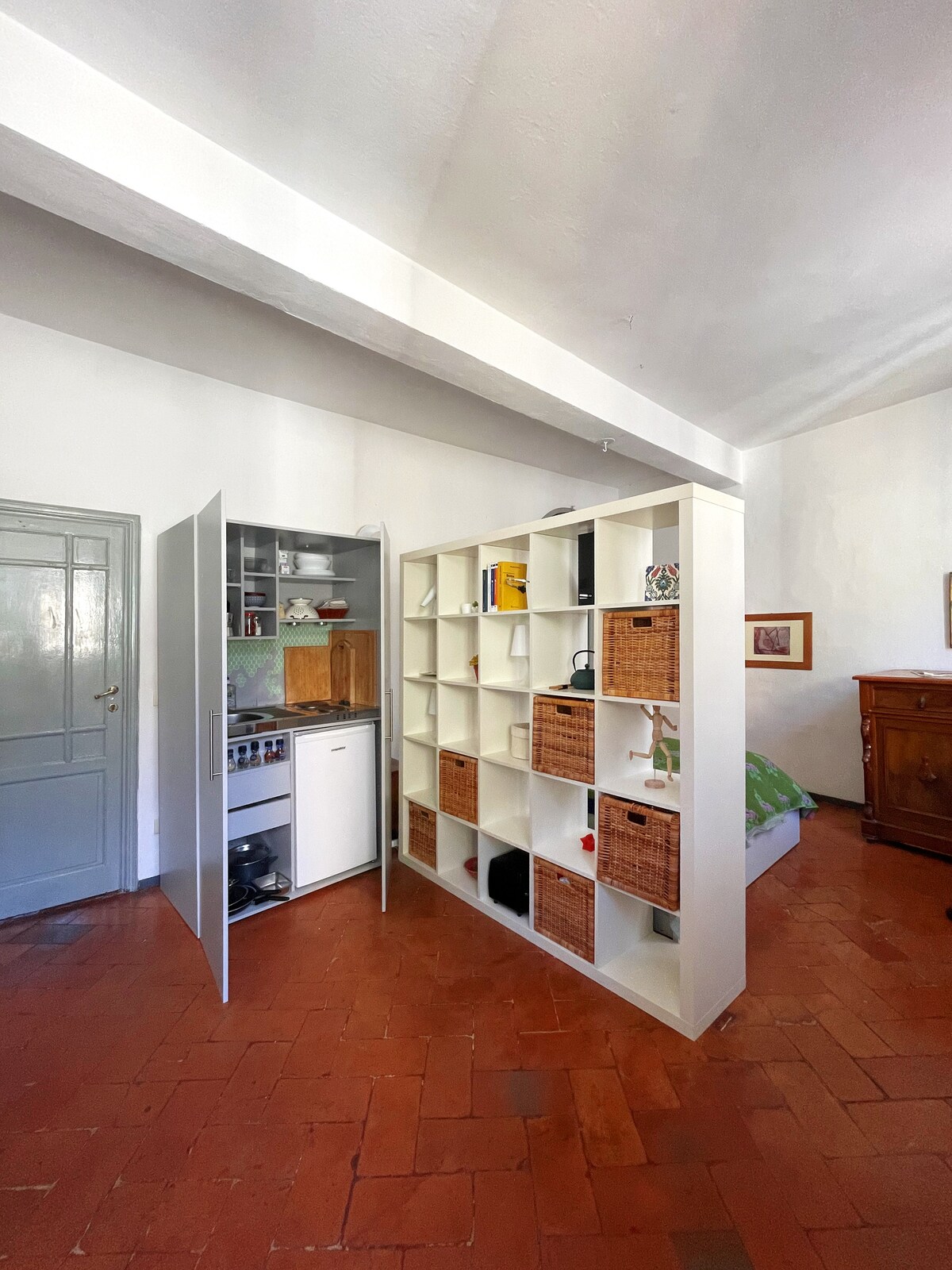 Erlebe Florenz in einem authentischen historischen Haus im pulsierenden Viertel Sant’Ambrogio, umgeben von Kunsthandwerksläden, Cafés und dem beliebten lokalen Markt. Die Gästesuite bietet einen eleganten und intimen Rückzugsort, der Privatsphäre mit der Wärme einer bewohnten florentinischen Residenz verbindet. Ideal für Reisende, die Atmosphäre, Charakter und eine echte Verbindung zur Stadt suchen, die über herkömmliche Hotelaufenthalte hinausgeht.