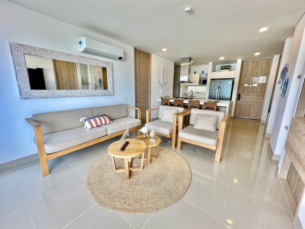 Genieße absolute Ruhe und Frieden in dieser brandneuen Wohnung mit Blick auf das Naturschutzgebiet und den Strand von Pozos Colorados. ★★★★★ „...die Wohnung ist großartig wegen ihrer schönen Aussicht oder dem Meer und den Sonnenuntergängen...“ ★★★★★ „...Ausgezeichnete Lage ... Restaurants nur 5 Minuten entfernt!!“ Du wirst die Lage lieben: ✔ 300 m vom Strand entfernt ✔ 5 Fahrminuten vom Flughafen entfernt. ✔ 2 Fahrminuten vom Einkaufszentrum Plaza Zazue entfernt. ✔ 25 Minuten vom historischen Stadtzentrum von Santa Marta entfernt.