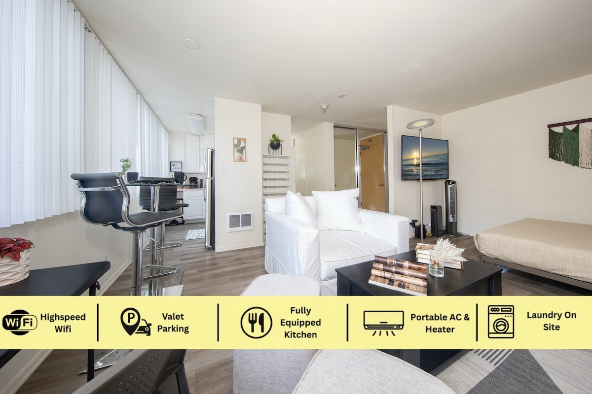 Newly Remodeled Luxury Double En- Suite featuring 2 King Beds! Centrally located in the Heart ❤️ of Down Town Santa Monica 🚶♀️Walking distance to: Beach🏖 SM Pier🎡 3rd St. Promenade Nightlife & Bars🥂 M Restaurants & Shopping 🛍 Professionally Managed, Cleaned & Sanitized 🧽 We Include: ✓ Gated Parking $25/night ✓ Fast Wifi ✓ Netflix, Prime, HBO Max ✓ 65” Tv & Tv’s in Every Room ✓ A/C & Heat ✓ Fully Stocked Kitchen ✓ Coffee & Tea (Decaf & Regular)