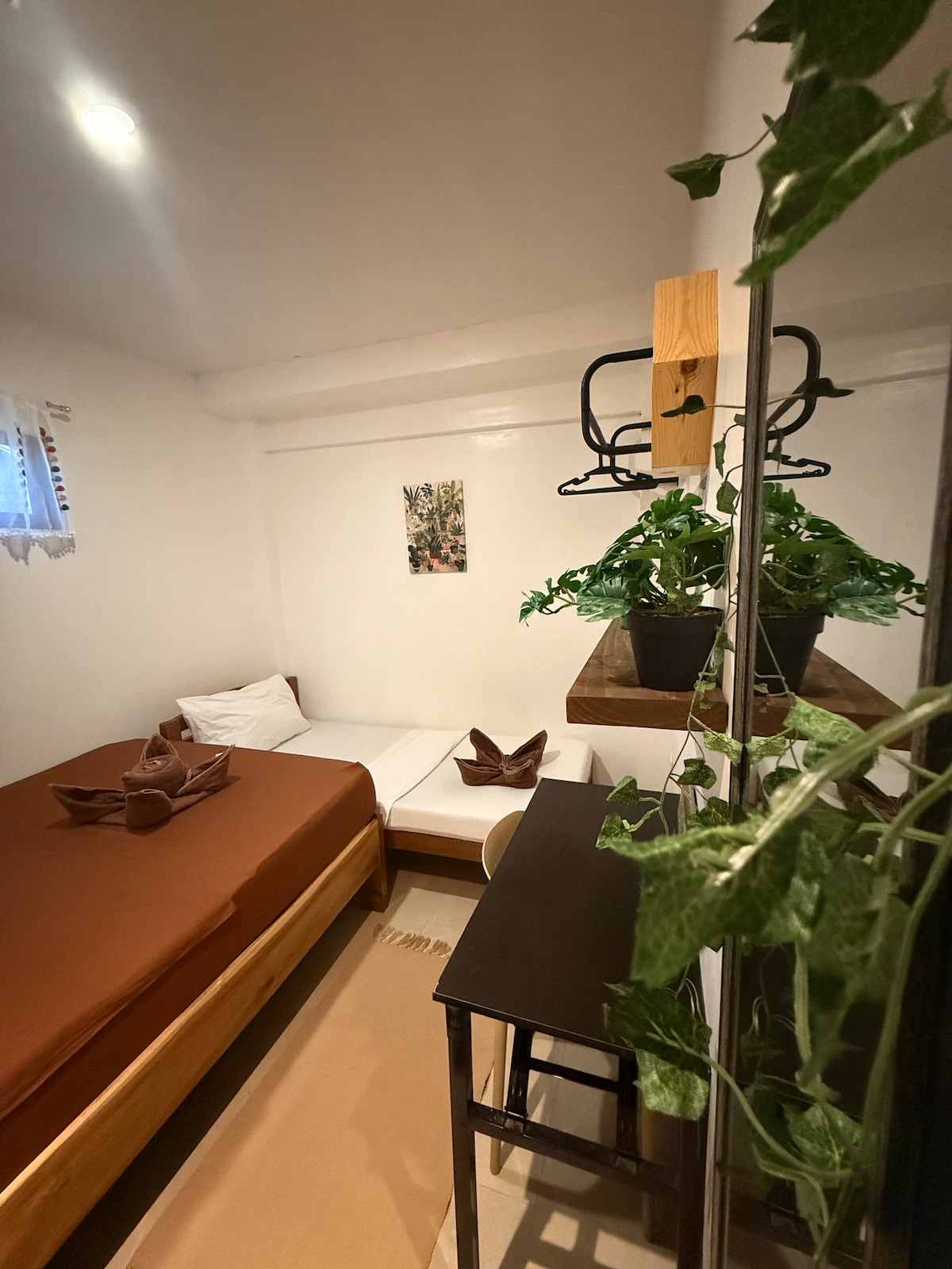 Unser schlichtes und geschmackvoll minimalistisches Gästehaus ist neu renoviert und günstig gelegen, nur 10 Fahrminuten von zum Cloud 9 Surfing Area und zum Stadtzentrum von General Luna. Cafés und Restaurants sind zu Fuß erreichbar. Öffentliche Verkehrsmittel sind ebenfalls leicht erreichbar. Unser Gästehaus verfügt über: • Klimaanlage • Deckenventilator • Wasserboiler für heiße Dusche, wenn du WIRKLICH eine brauchst • Warm- und Kaltwasserspender • Starlink-WLAN • BACKUP-STROMERZEUGER für die häufigen Stromunterbrechungen.