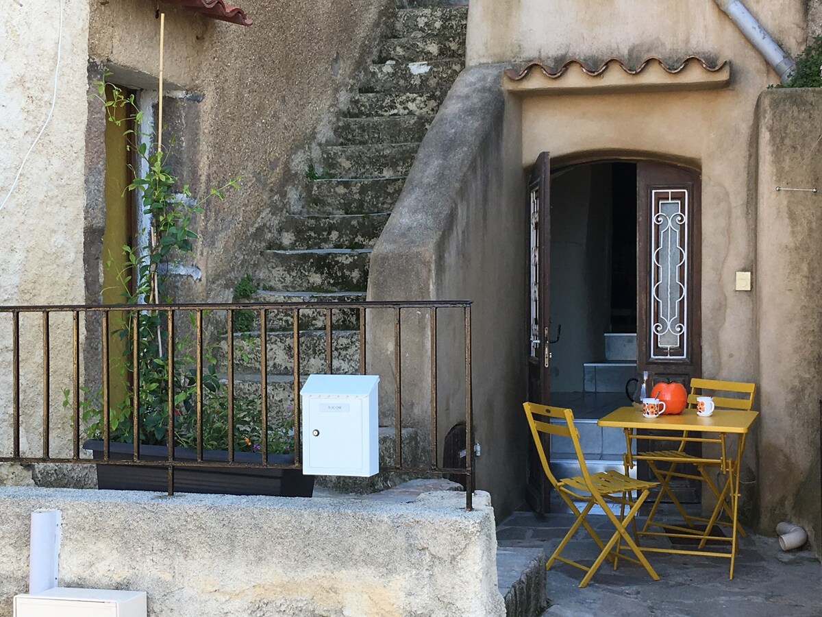 Hochgelegen und versteckt in einer Gasse auf den Höhen von Corbara, ruhig und sanft für diese Familienwohnung, die an den Stein angelehnt ist, mit dicken Wänden, typisch für korsische Dörfer. 35 m2, die wir renoviert haben, kombinieren Komfort, Tradition und Charme (WLAN) 50 m vom Panoramablick auf La Chapelle des 7 Schmerzes. 10 Autominuten von den Stränden und Geschäften von Ile Rousse und Algajola entfernt Restaurants/Gemüsehändler/Lebensmittelgeschäft im Dorf (pdt Saison) Lebensmittelgeschäft ganzjährig geöffnet