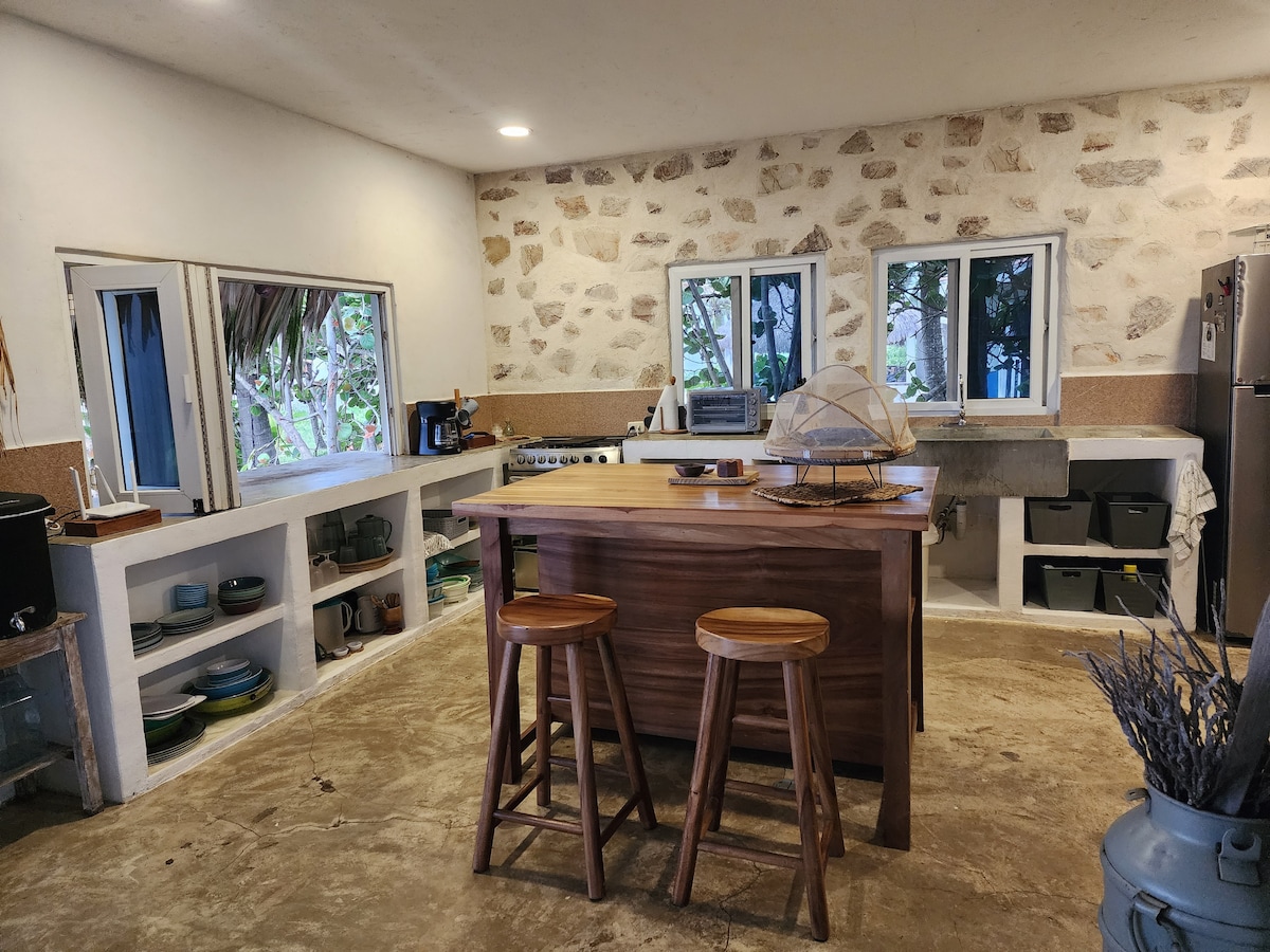 Strandhaus direkt am Meer, komplett privat. Das Haus verfügt über Süßwasser, für das eine Zisterne angelegt wurde, und der Pool ist mit Salzwasser gefüllt. Voll ausgestattete Küche mit Klimaanlage. Zwei Schlafzimmer mit Klimaanlage und jeweils eigenem Bad. Ruheranch mit Hängematten, Fußgängerausgang zum Strand, ideal zum Ausruhen, in Begleitung von Freunden und Familie, Ruhig und gemütlich. Entworfen für die Privatsphäre unserer Gäste. 3 private Parkplätze auf dem Grundstück.