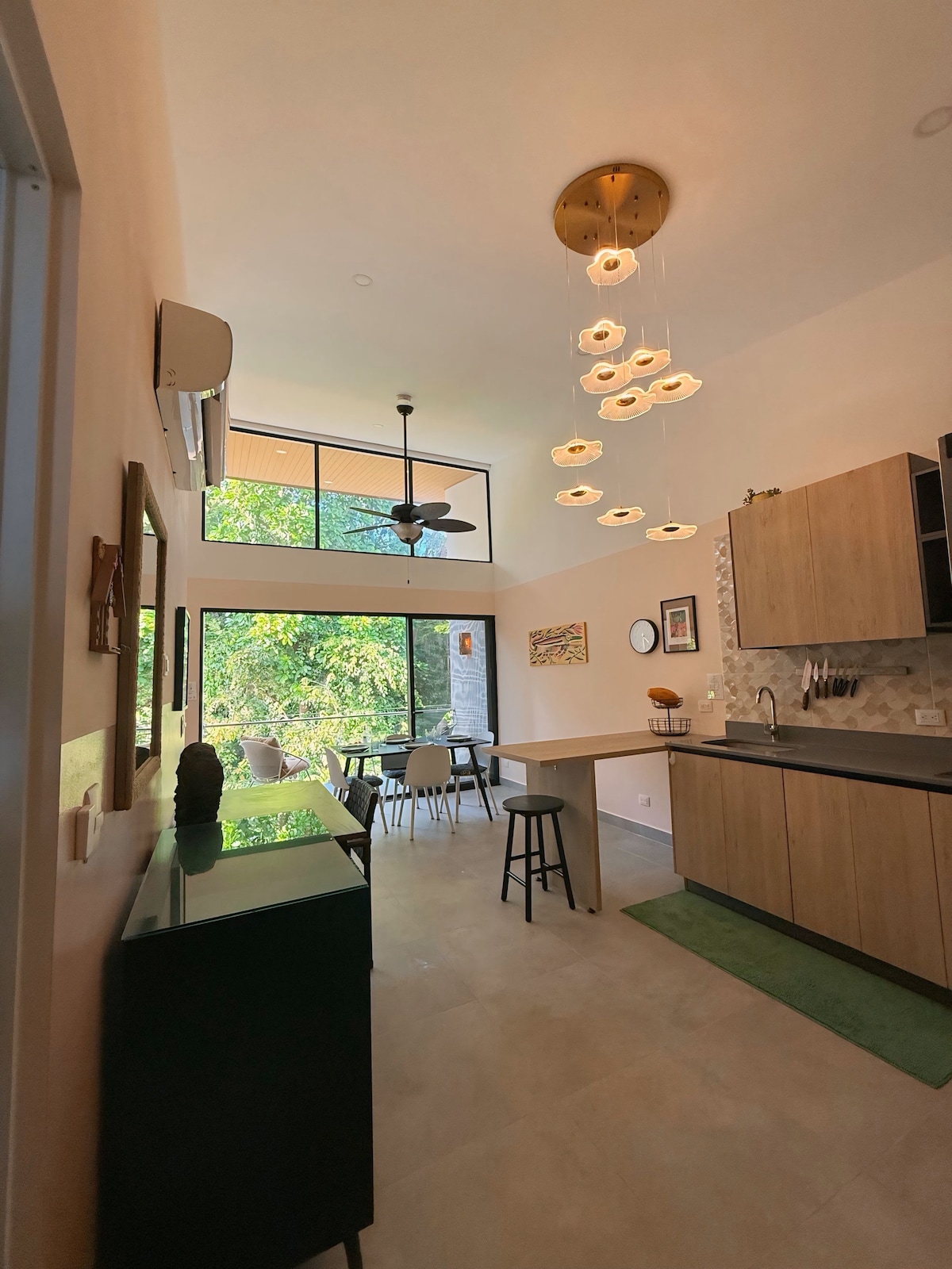 Entdecke dein Stück vom Paradies im costa-ricanischen Dschungel! Dieses herrliche Haus verfügt über einen offenen Sitz-/Ess-/Küchenbereich, 1 Doppelzimmer mit eigenem Bad, 1 Doppelzimmer und ein Badezimmer, ergänzt durch Balkone mit herrlichem Dschungelblick und einen angenehmen Arbeitsbereich mit Highspeed-WLAN. Mit einem privaten Parkplatz ist dein Seelenfrieden gewährleistet. Dieser Hafen ist auf diejenigen Seelen zugeschnitten, die Ruhe und Inspiration suchen, und liegt nur 3 km von Playa Carmen und 5 km vom Dorf Santa Teresa entfernt.