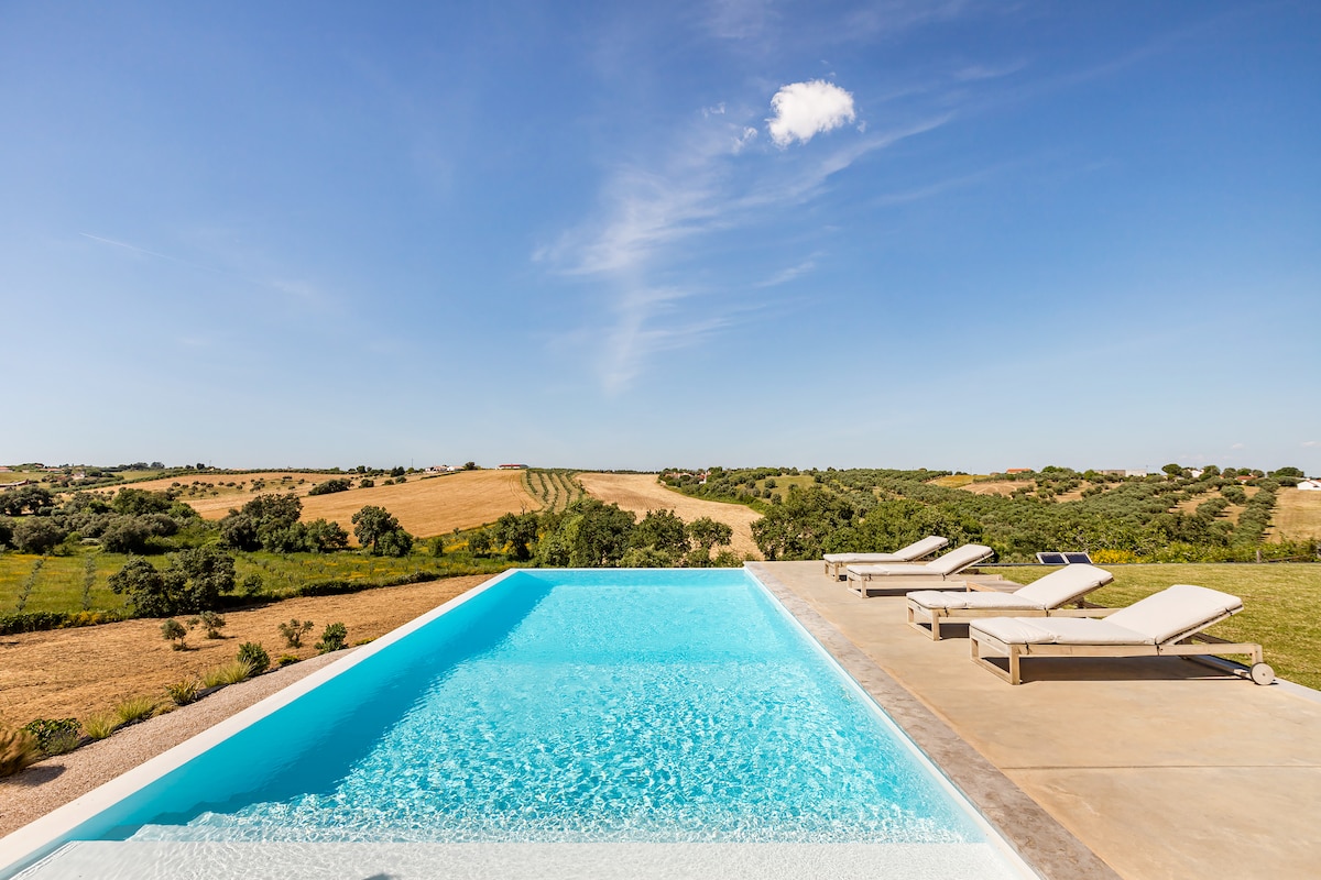 A TRUE RETREAT WITH ALL THE MODERN AMENITIES. VERY PRIVATE CONTEMPORARY STYLE VILLA. OPEN PLAN LIVING ROOM WITH FLOOR-TO-CEILING WINDOWS SO YOU CAN ENJOY THE UNIQUE VIEWS OF THE SURROUNDING FARMLAND WITH ANCIENT OLIVE TREES. ON THE OUTSIDE, AN ELEVATED INFINITY POOL AND A BIG DINING TABLE TO ENJOY THE AMAZING SUNSET. LOCATED IN A SMALL VILLAGE, 45 MIN AWAY FROM LISBON, AND 6 MILES FROM SANTARÉM. YOU CAN ALSO VENTURE INTO A LOVELY HORSE RIDE OR WINE TASTING IN ONE OF THE SURROUNDING PROPERTIES.