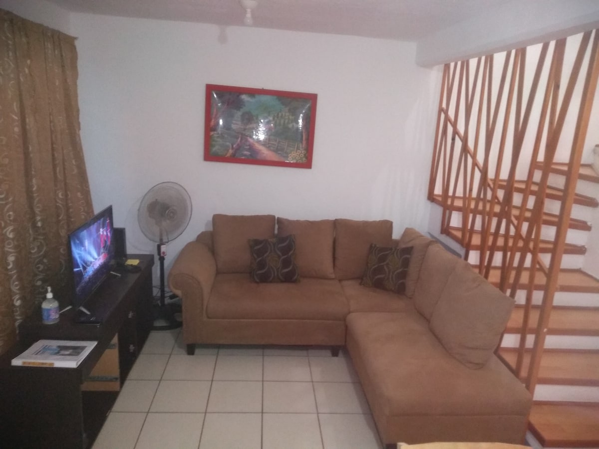 Excelente lugar para descansar, sencillo y económico, al alcance de tu bolsillo, con tres habitaciones, dos camas matrimoniales y cuatro individuales, Wifi 300 MBPS,Smart TV de 40",HBO Max, Netflix, aire acondicionado tipo mini split en las tres habitaciones, un ventilador de pared en cada habitación, dos ventiladores de pared en la sala, TV de Megacable, microondas, refrigerador, garaje para un vehículo y uno mas en la calle, Oxxo a una cuadra, Tienda 3B a una cuadra y Farmacia Similares.