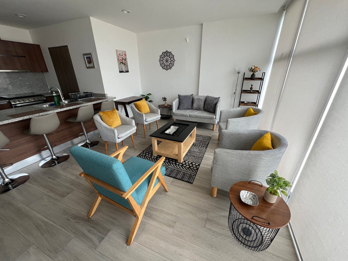 Brand-new, located in the heart of Juriquilla, this 160 m2 apartment offers a one-of-a kind experience, going above and beyond with amenities & entertainment. If you are looking for top quality, look no further and come to the most modern & luxurious apartment in Queretaro for an unforgettable stay Walking distance from Starbucks, Walmart, Bars and top restaurants like Sonora Grill & Hunger, this apartment has it all, comfortable beds, balcony, OLED 4K TVs and a 100" Home-Cinema from your bed