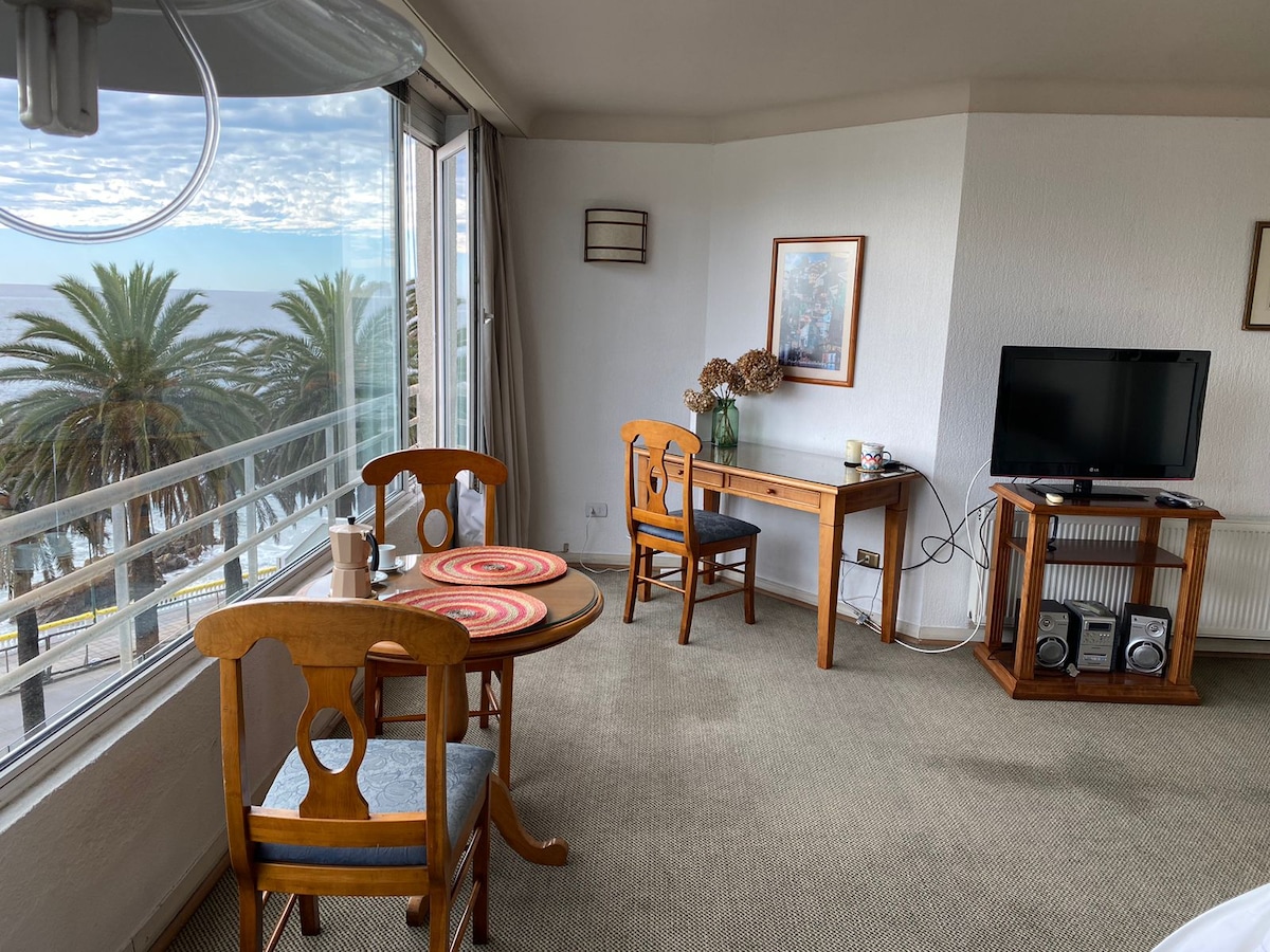Schöne und elegante möblierte Wohnung mit herrlichem Meerblick, gegenüber dem Sheraton Hotel in Viña del Mar. Sie ist sehr hell und nur wenige Schritte vom Zentrum von Viña, dem Strand, der Blumenuhr und der Av. Perú. Sie ist ideal für ein Paar (Kingsize-Bett) und hat genügend Platz, um ein Kinderbett (nicht im Lieferumfang enthalten) zu integrieren. Von der Wohnung aus kann man am Küstenrand entlang spazieren. Sie verfügt über 1 überdachten Privatparkplatz, eine Waschküche und einen Pool. Es gibt Tag und Nacht einen Concierge. Mindestaufenthalt 2 Nächte
