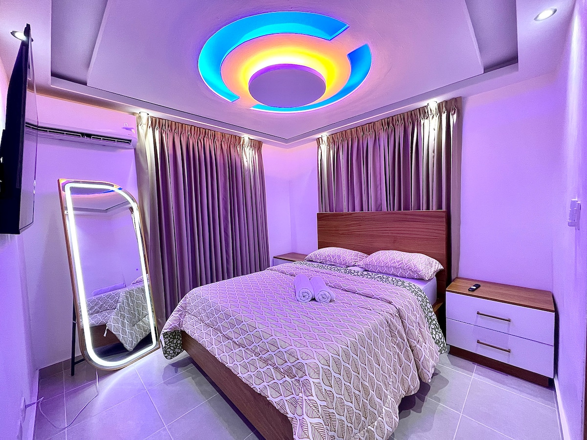 Modern one-bedroom Airbnb apartment thoughtfully curated & beautifully decorated with a minimalist design approach. Perfect for a couple or single travelers! Located in the heart of the city of Santiago De Los Caballeros, Dominican Republic. Near to the center of the city: Monument, malls (Agora Mall), restaurants, bars, hospitals and shopping. Everything you need will be less than 5 minutes away. 15 min drive from the STI Airport.
