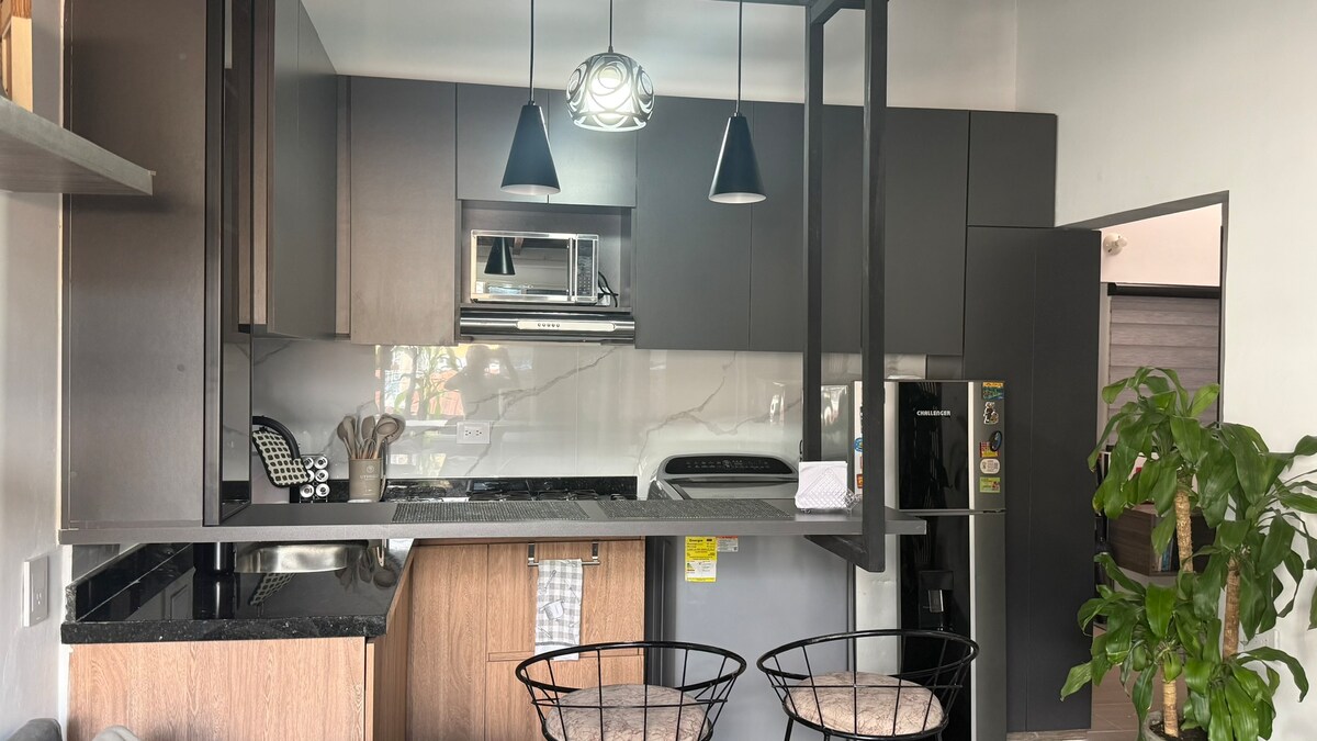 Disfruta de un loft moderno en Cabecera del Llano, perfecto para relajarte y descansar, ideal para parejas. Cama King con TV 55” frente a la cama, ventanales piso-techo con blackout, sala con hamaca y comedor, cocina equipada, A/C, Wi-Fi con respaldo y planta de energía. Zona de trabajo con mesa y silla ergonómica. Ingreso autónomo con códigos y ascensor. Minimarket 24/7 en el piso 1. Rodeado de parques, cafés, restaurantes y centros comerciales. ¡Comodidad, estilo y ubicación en un solo lugar!