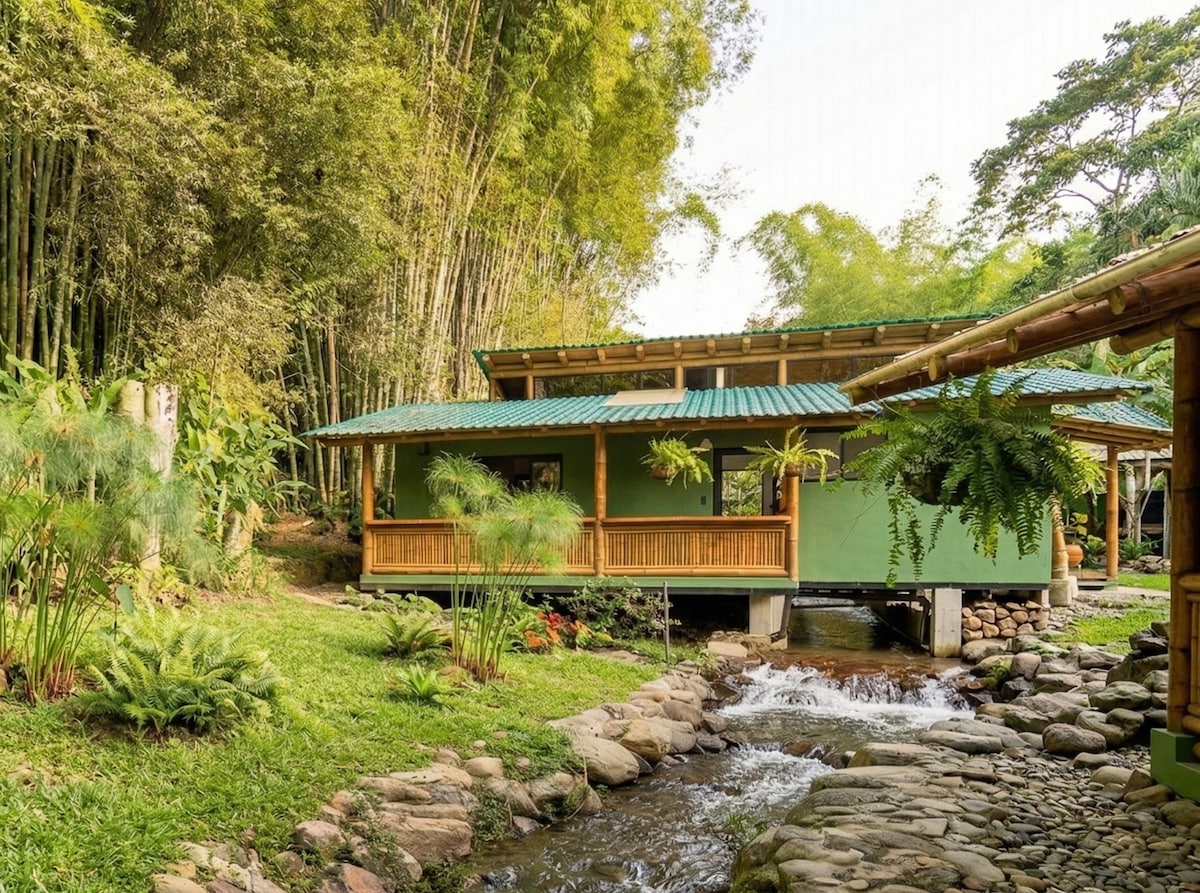 Üppiges Nebelwaldhaus am Flussufer – zu Fuß in die Stadt