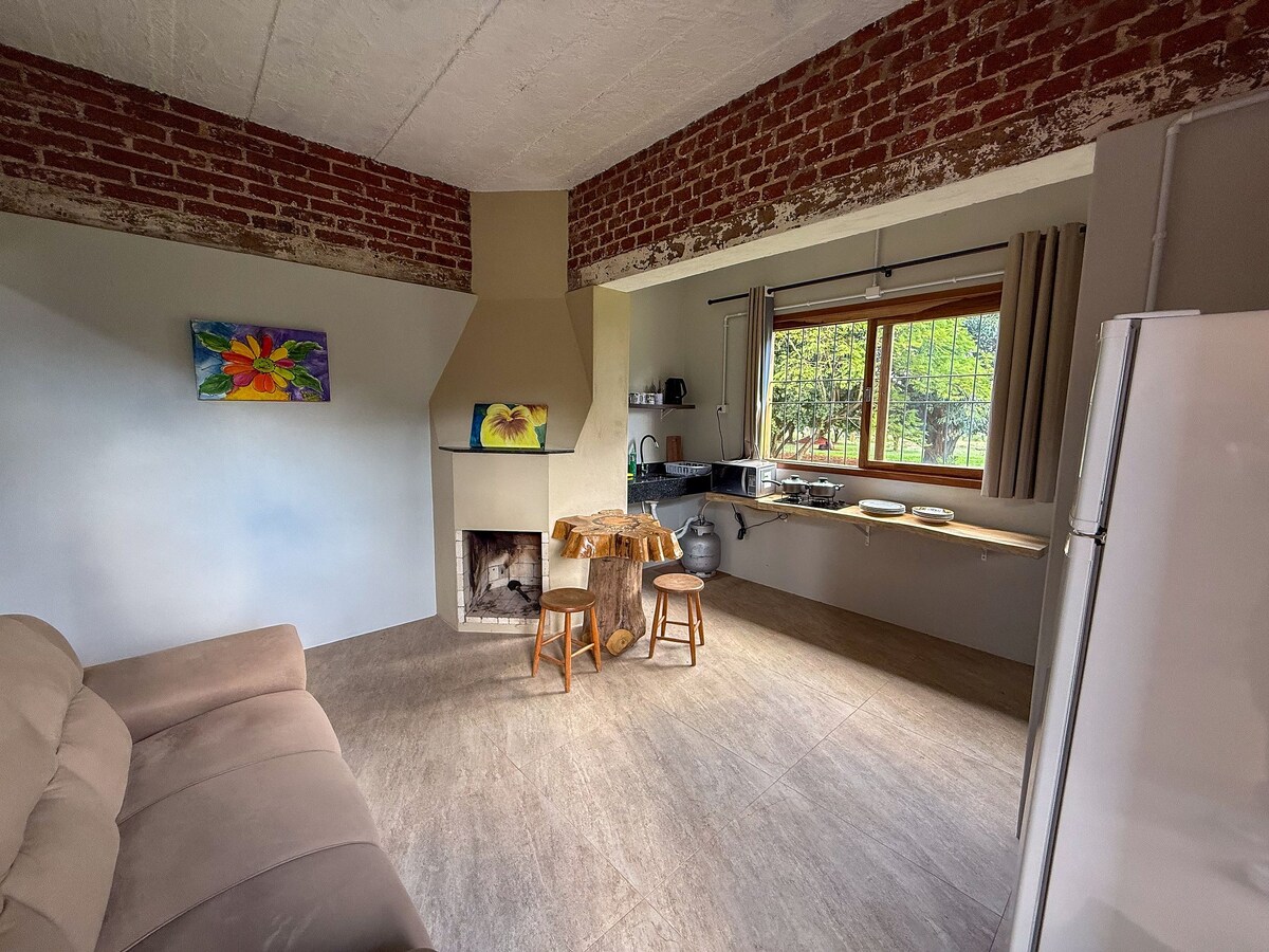 Entspanne dich in diesem ruhigen Haus mit 1 Schlafzimmer in der Nähe des Flusses, inmitten der Natur. Es ist ein neues Haus mit warmen und modernen Details. Der Ursprung des Namens: Timbó ist einer der Bäume, die wir an der Stelle gefunden haben, als wir anfingen zu bauen. Obwohl er zusammengebrochen war, haben wir sein Holz wiedergewonnen, um die Tische im Haus zu bauen und so seine Erinnerung zu ehren. Bahía, weil wir einen ruhigen Ort in der Nähe des Flusses bieten. Vom Balkon des Hauses aus kannst du an vielen Nachmittagen Affen und Vögel in der Umgebung sehen.