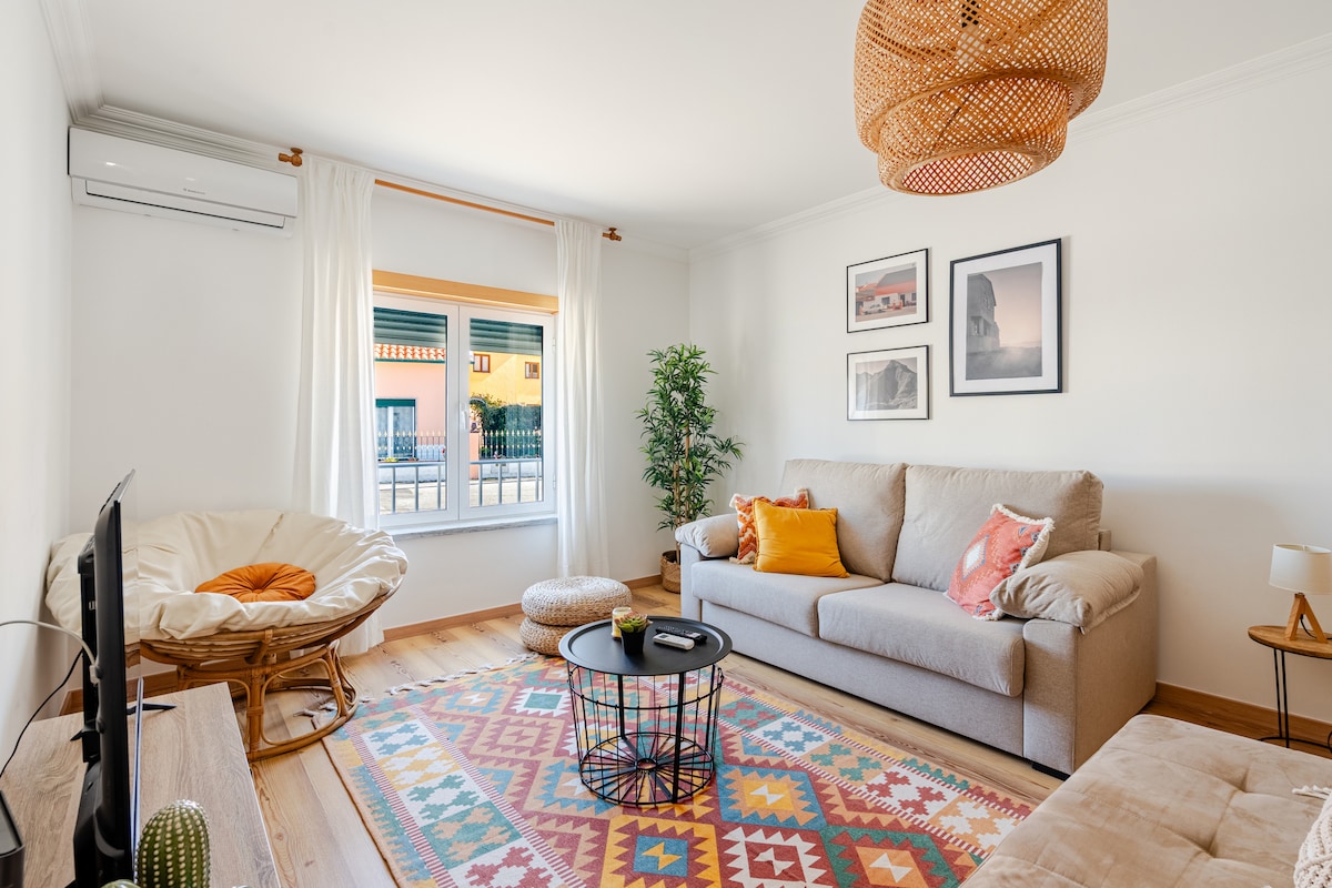 Sun Sea Sand ist ein erstklassiges modernes und geräumiges Apartment mit einem Schlafzimmer und Meerblick in Santa Cruz, Torres Vedras. Wir sind am Meer an der Silberküste, etwa 50 Minuten nördlich von Lissabon. 2022 gebaut, gut isoliertes Gebäude. Aufzug, Zentralheizung (Nov-Feb), Kingsize-Plüschbett, Highspeed-WLAN, 55-Zoll-Smart-TV, Privatparkplatz. Es hat den gleichen Komfort wie zu Hause, bring einfach dein Gepäck mit und du bist fertig!