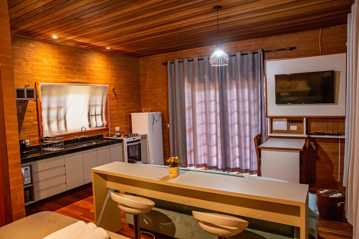 Exclusividade e conforto. A Vila Bela Vista é um refúgio único em São Bento do Sapucaí, localizada a apenas 1 km do centro, unindo o melhor dos dois mundos: fácil acesso e total imersão na natureza. Pensada para quem valoriza liberdade e conforto, a vila oferece o conceito de Self Accommodation, proporcionando uma estadia prática e acolhedora Cada unidade conta com cozinha completa, equipada com todos os utensílios necessários para você preparar suas refeições com autonomia.